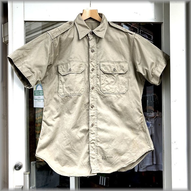 ※複数購入で同梱希望でしたら、発送はゆうパックをご選択ください。 1個目の送料はかかりますが、2個目以降はサイズが変わっても送料は最初の一個分の送料と同じになります。(2個目以降の送料は無料ということです) もしレターパックをご選択された場合は別々の発送になってしまいますのでご注意ください。 送料で分からないことがございましたら、メッセージから気軽にお問い合せください。(レターパックで同梱も商品によっては出来る場合もなくはないですし、追跡番号の無い定形外郵便はオススメできないので発送の選択肢に入れていませんが、それをご了解いただいた上でしたら対応も可能ですので) ★商品 米軍 62年 ビンテージ ミリタリー 半袖シャツ ※画像は屋外で撮影しており撮影条件による画像の色合いの違いはありますのでその点ご了承ください。 色合いを気になさる方は店頭でご確認ください。(画像の色合いとの相違による返品は対応しかねるので慎重にご検討ください) 実際にご覧になりたい方は是非店頭までお越し下さい☆ (下記にお店の紹介があります) ★サイズ サイズ表記 16×35 実寸をご参考下さい。 実寸 着丈(首の付け根から裾)約76センチ 身幅(脇の下から脇の下 約59センチ 肩幅 約45センチ 袖丈 約21.5センチ ※多少の誤差はご了承下さい。サイズに関する返品・交換は対応しておりませんので、慎重にご検討ください。 ★状態 USEDです。両袖にワッペンの外した跡があります。(画像参照)ボディに少し汚れがあります。(主に画像部分)ビンテージ物としては問題無く着用いただける状態です。 ★注意事項 別途送料がかかりますので、送料をご確認ください。 分からない事がありましたら遠慮なくご問い合わせください。 店頭でも同時に販売しており、近いタイミングで売れた場合は店頭を優先させていただきますのでご了承ください。(その場合はキャンセルとさせていただきます) 状態の記述に関して細かいダメージを一つ一つ記述する事は難しいので、その点ご了承ください。 撮影の際に使用する備品(ハンガーやシューキーパー等)は表記が無い限りは出品に含まれません。 パソコンの環境、撮影時の光の具合で多少色合いが異なることもございますので、その点ご了承お願い致します。 実寸等は参考として載せてますので、ベストフィットをお求めの方は店頭での試着をオススメします。 古着、デッドストックという商品の性質上、ノークレーム、ノーリターンでお願いします。(商品説明と商品自体に著しく相違がある場合は除きます) ☆☆ご閲覧ありがとうございました☆☆