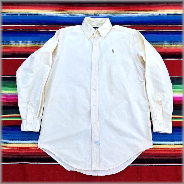 ★ポロ ラルフローレン 90s オックスフォード地 長袖 ボタンダウンシャツ 外タブ付き 15 1/2-33★検索 ビンテージ アメリカ 古着 80s