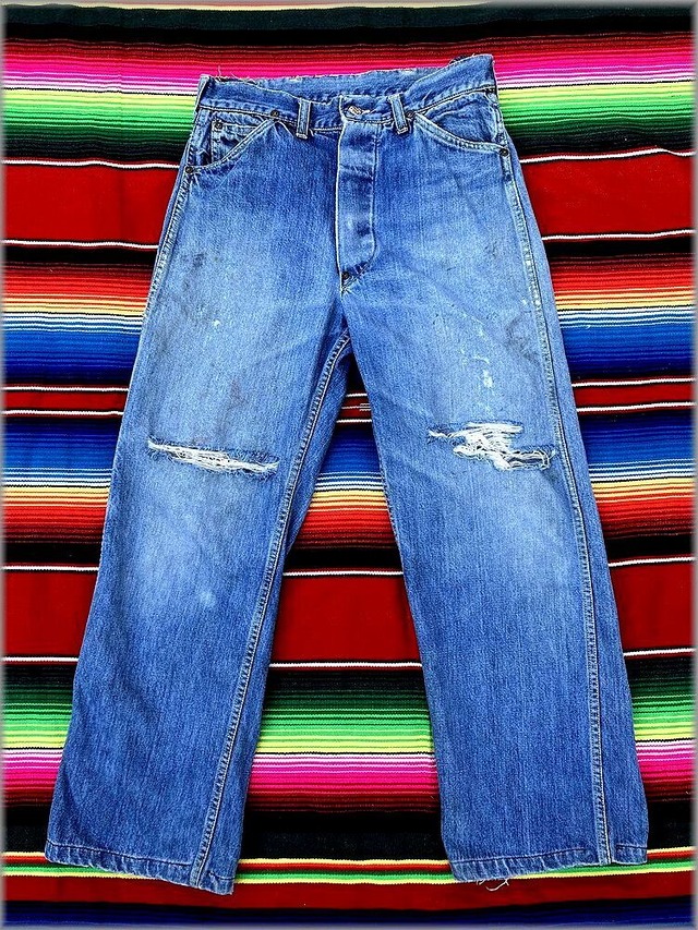 ※複数購入で同梱希望でしたら、発送はゆうパックをご選択ください。 1個目の送料はかかりますが、2個目以降はサイズが変わっても送料は最初の一個分の送料と同じになります。(2個目以降の送料は無料ということです) もしレターパックをご選択された場合は別々の発送になってしまいますのでご注意ください。 送料で分からないことがございましたら、メッセージから気軽にお問い合せください。(レターパックで同梱も商品によっては出来る場合もなくはないですし、追跡番号の無い定形外郵便はオススメできないので発送の選択肢に入れていませんが、それをご了解いただいた上でしたら対応も可能ですので) ★商品 SEARS ROEBUCKS 60s フリスコタイプ 5ポケット ジーンズ 両耳付き ジッパーはグリッパージッパーです。 デニムは濃淡が少なくいわゆるバットダイかと思いますが、後年のただベタっとした感じではなく縦にスジの入った少し縦落ち感のある、表情のあるデニムです。 ※画像は屋外で撮影しており撮影条件による画像の色合いの違いはありますのでその点ご了承ください。 色合いを気になさる方は店頭でご確認ください。(画像の色合いとの相違による返品は対応しかねるので慎重にご検討ください) 実際にご覧になりたい方は是非店頭までお越し下さい☆ (下記にお店の紹介があります) ★サイズ サイズ表記 ? 実寸をご参考ください。 実寸(平置きで採寸してます) ウエスト幅 約48センチ レングス 約79センチ 総丈(サイドで採寸) 約109センチ 股上(前面の股の付け根から上まで) 約32センチ 膝辺りの幅 約24センチ 裾幅 約21センチ ※多少の誤差はご了承下さい。サイズに関する返品・交換は対応しておりませんので、慎重にご検討ください。 ★状態 USEDです。背面のベルトループのタグ、ヒップポケットのパッチは欠損しています。ビンテージ物としては問題無く着用いただける状態です。 ★注意事項 別途送料がかかりますので、送料をご確認ください。 分からない事がありましたら遠慮なくご問い合わせください。 店頭でも同時に販売しており、近いタイミングで売れた場合は店頭を優先させていただきますのでご了承ください。(その場合はキャンセルとさせていただきます) 状態の記述に関して細かいダメージを一つ一つ記述する事は難しいので、その点ご了承ください。 撮影の際に使用する備品(ハンガーやシューキーパー等)は表記が無い限りは出品に含まれません。 パソコンの環境、撮影時の光の具合で多少色合いが異なることもございますので、その点ご了承お願い致します。 実寸等は参考として載せてますので、ベストフィットをお求めの方は店頭での試着をオススメします。 古着、デッドストックという商品の性質上、ノークレーム、ノーリターンでお願いします。(商品説明と商品自体に著しく相違がある場合は除きます) ☆☆ご閲覧ありがとうございました☆☆