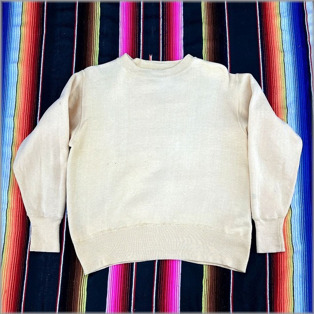 ※複数購入で同梱希望でしたら、発送はゆうパックをご選択ください。 1個目の送料はかかりますが、2個目以降はサイズが変わっても送料は最初の一個分の送料と同じになります。(2個目以降の送料は無料ということです) もしレターパックをご選択された場合は別々の発送になってしまいますのでご注意ください。 送料で分からないことがございましたら、メッセージから気軽にお問い合せください。(レターパックで同梱も商品によっては出来る場合もなくはないですし、追跡番号の無い定形外郵便はオススメできないので発送の選択肢に入れていませんが、それをご了解いただいた上でしたら対応も可能ですので) ★商品 AKOM 50s ビンテージ スウェット トレーナー セットインスリーブ 無地 色は薄い黄色という感じです。(画像は色合いが上手く出ていませんのでご了承ください。主観で言うなら黄色と肌色の中間ような感じの色合いでしょうか。細かい色合いに拘る方は店頭でご確認ください) ※画像は屋外で撮影しており撮影条件による画像の色合いの違いはありますのでその点ご了承ください。 色合いを気になさる方は店頭でご確認ください。(画像の色合いとの相違による返品は対応しかねるので慎重にご検討ください) 実際にご覧になりたい方は是非店頭までお越し下さい☆ (下記にお店の紹介があります) ★サイズ サイズ表記 M 38-40 実寸をご参考下さい。 実寸 着丈(首の付け根から裾まで)約57センチ 身幅(脇の下から脇の下) 約56センチ 肩幅 約50センチ 袖丈 約56センチ 裾リブの長さ 約9センチ 袖リブの長さ 約9センチ ※多少の誤差はご了承下さい。サイズに関する返品・交換は対応しておりませんので、慎重にご検討ください。 ★状態 USEDです。多少の汚れがあります。ステッチの多少の解れがあります。リブの付け根(ステッチ部分)の若干のイタミがあります。大まかな部分の画像は載せてありますのでご確認ください。生地自体は肉厚感、フカフカ感が残っていて、それほど着用やウォッシュをした感じではないです。ビンテージ物として目立つような問題はないと思いますが、状態が心配な方は店頭でご確認ください。 ★注意事項 別途送料がかかりますので、送料をご確認ください。 分からない事がありましたら遠慮なくご問い合わせください。 店頭でも同時に販売しており、近いタイミングで売れた場合は店頭を優先させていただきますのでご了承ください。(その場合はキャンセルとさせていただきます) 状態の記述に関して細かいダメージを一つ一つ記述する事は難しいので、その点ご了承ください。 撮影の際に使用する備品(ハンガーやシューキーパー等)は表記が無い限りは出品に含まれません。 パソコンの環境、撮影時の光の具合で多少色合いが異なることもございますので、その点ご了承お願い致します。 実寸等は参考として載せてますので、ベストフィットをお求めの方は店頭での試着をオススメします。 古着、デッドストックという商品の性質上、ノークレーム、ノーリターンでお願いします。(商品説明と商品自体に著しく相違がある場合は除きます) ☆☆ご閲覧ありがとうございました☆☆