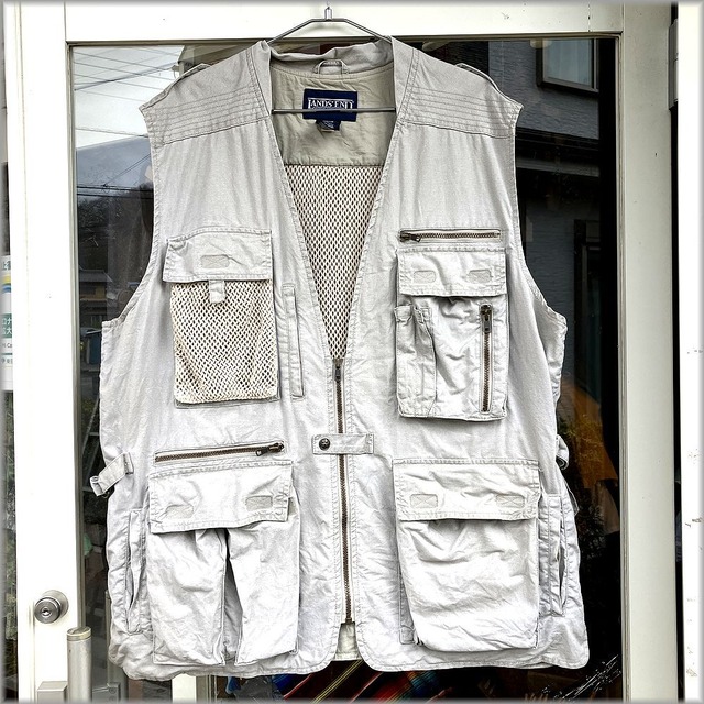 ★ランズエンド LANDS' END 90s サファリ ベスト size L★検 ハンティング フィッシング アウトドア ビンテージ ジャケット アメリカ 古着