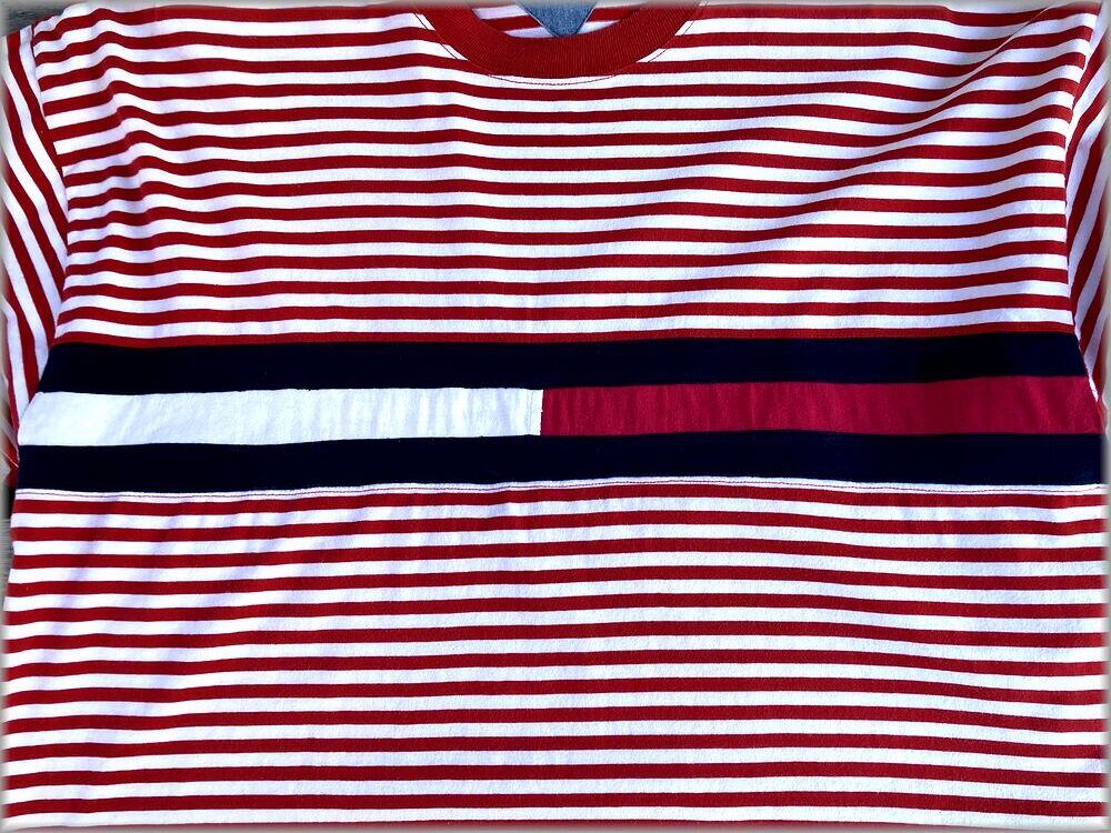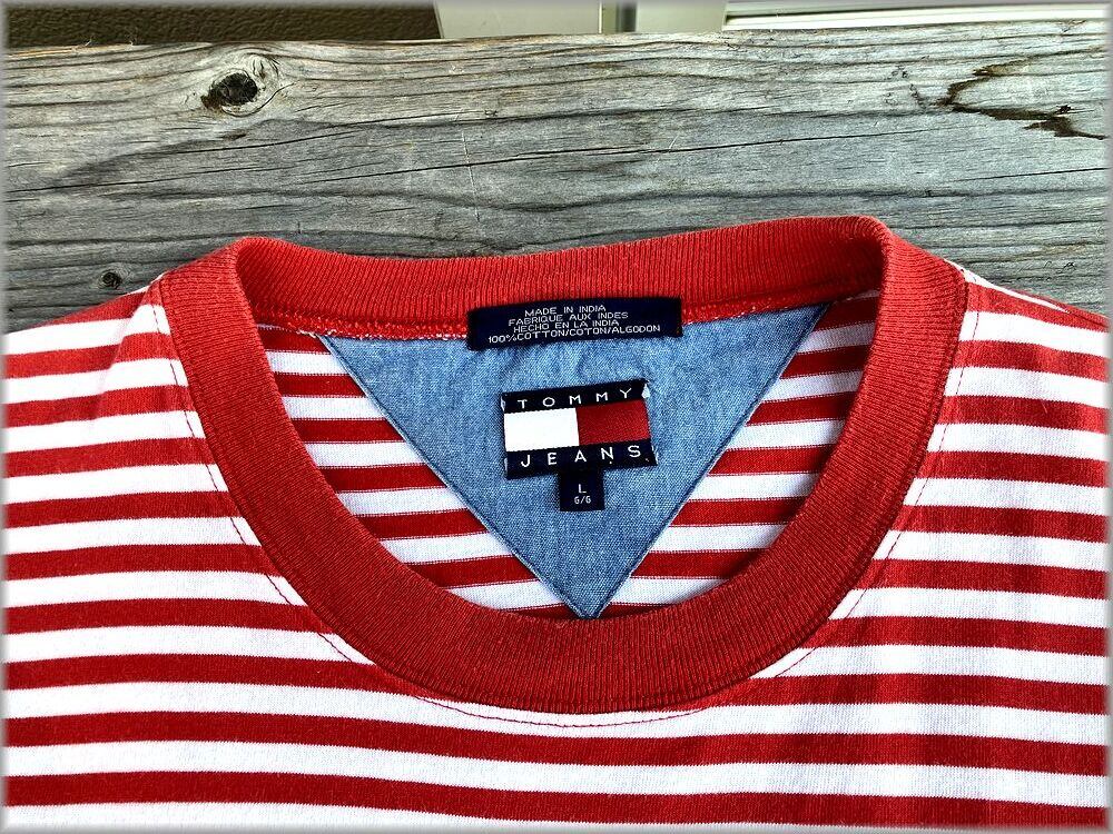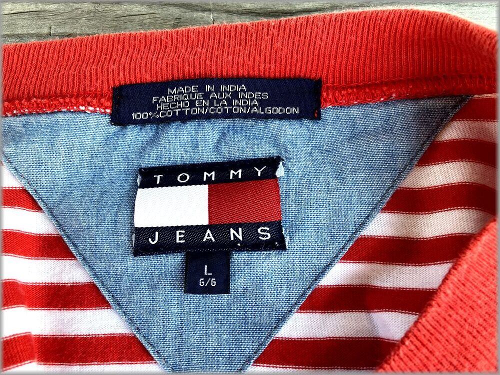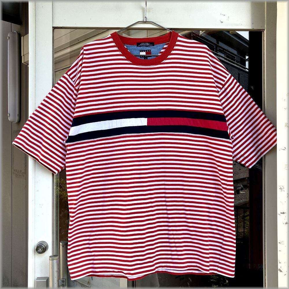 ★トミーヒルフィガー TOMMY HILFIGER 90s ボーダー柄 Tシャツ size L ビッグシルエット★検索 ビンテージ アメリカ 古着 ヒップホップ