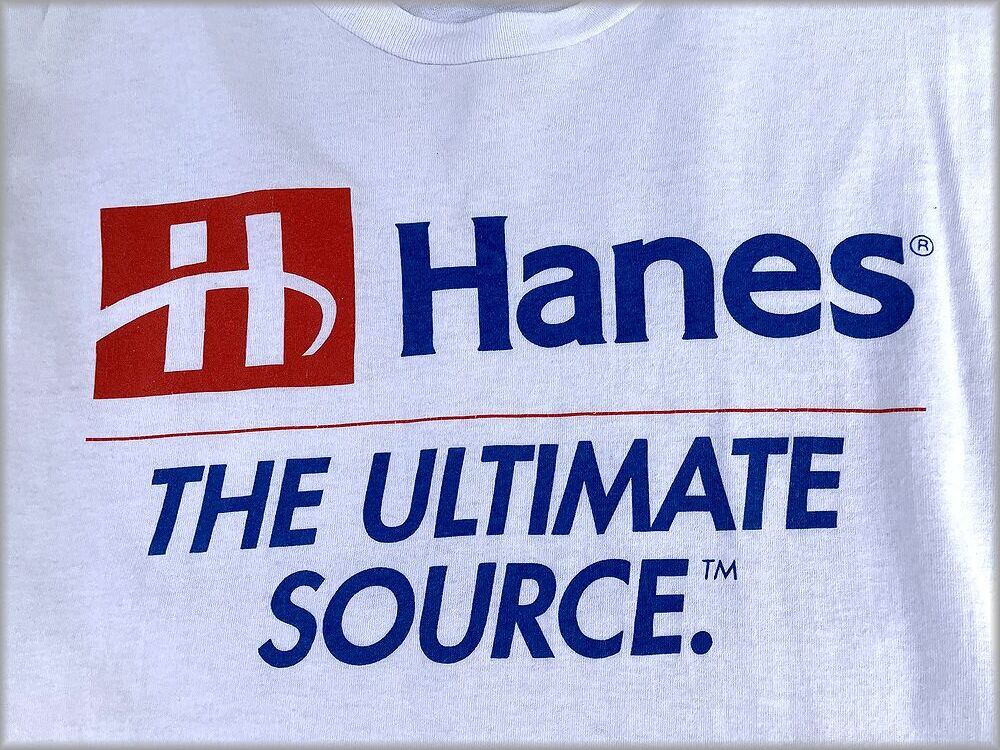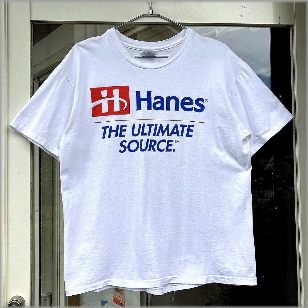 ★HANES ヘインズ 80s 90s USA製 Tシャツ ロゴプリント size L★検索 ビンテージ 企業物 アメリカ 古着 フルーツオブザルーム ONEITA