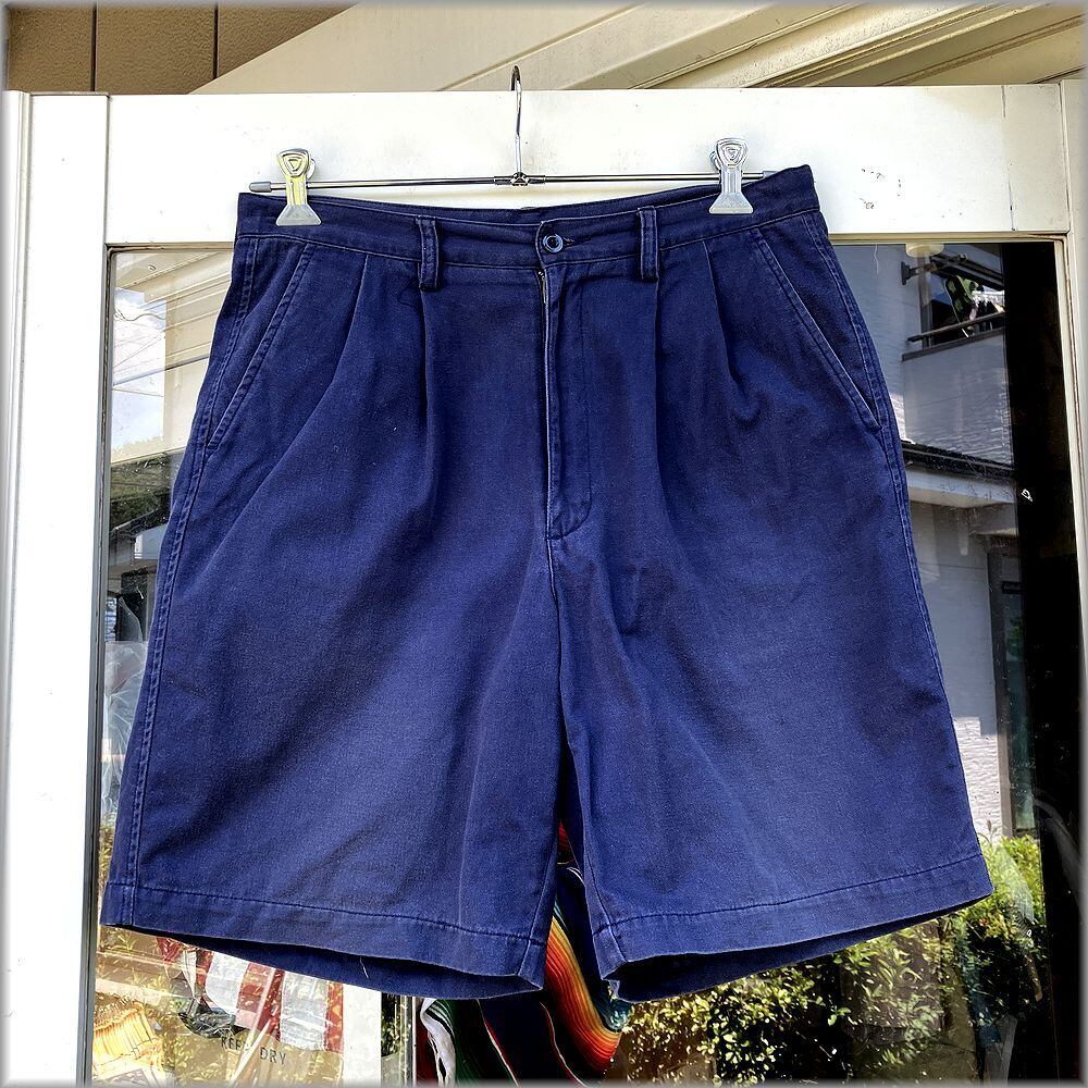 ★NIKE GOLF ナイキゴルフ 90s 2タック コットン ショーツ ショートパンツ 紺色 size M 32 W84cm位★検索 ビンテージ 古着 タイガーウッズ