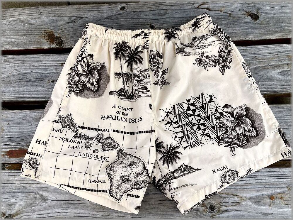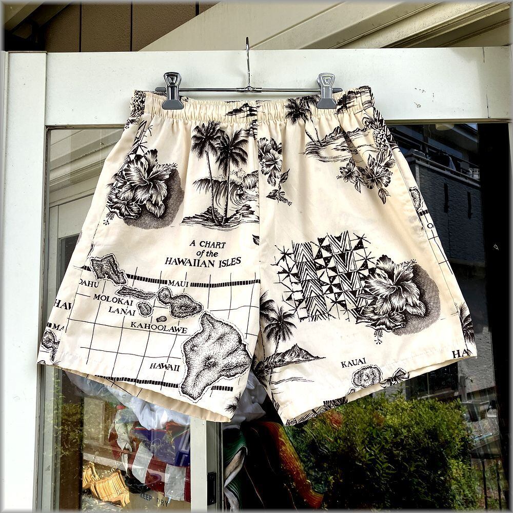 ★70s 80s ハワイ製 総柄 ショーツ ショートパンツ★検索 ビンテージ USA製 ビーチ サーフ アロハ ハワイアン アメリカ 古着