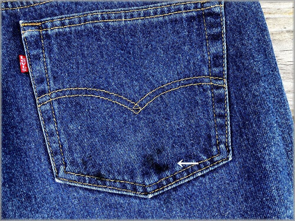 USEDです。デニムの色はすごい濃いという程ではないですが、まだ若干毛羽立ちも残っていて色は残っている方かなと思います。右ヒップポケットにインク系の汚れがあります。(画像参照)外側からは目立つ程ではないので、問題無く着用いただける状態かと思います。