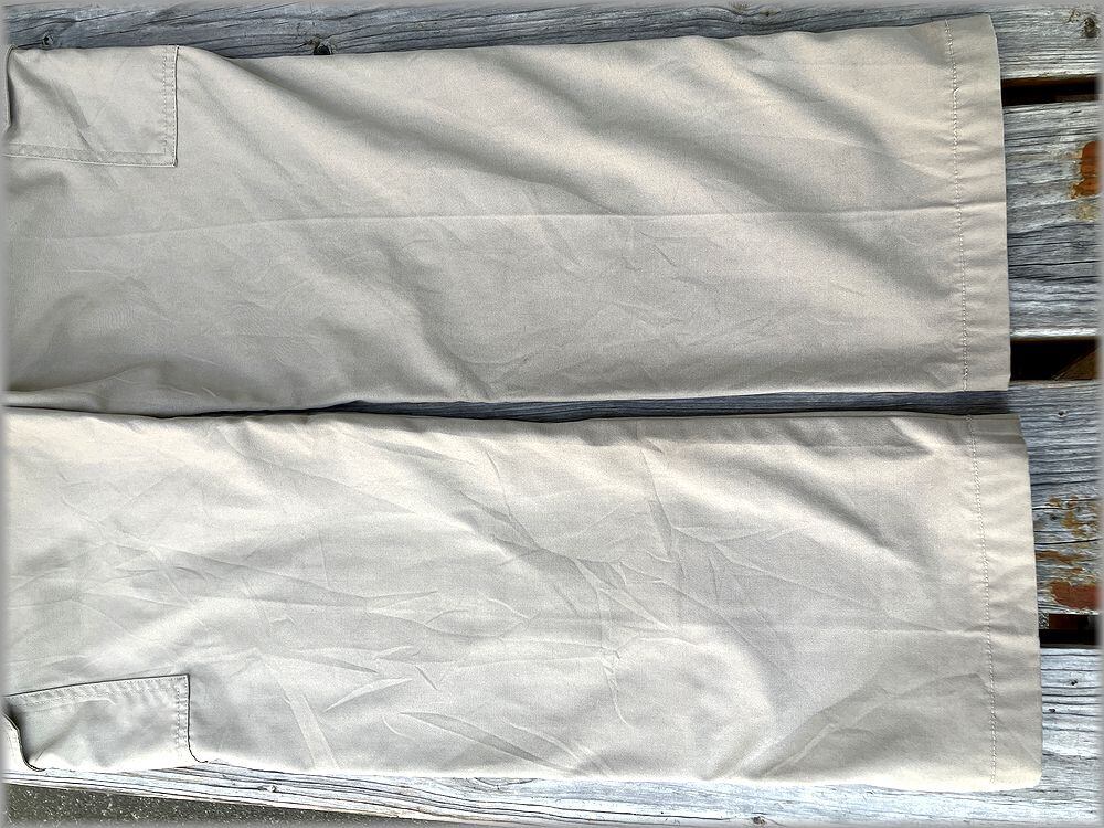 実寸(平置きで採寸してます) ウエスト幅 約40センチ(両サイドにゴムが付いていて多少伸縮します) レングス 約77センチ 総丈(サイドで採寸) 約105センチ 股上(前面の股の付け根から上まで) 約31センチ 膝辺りの幅 約25センチ 裾幅 約22センチ