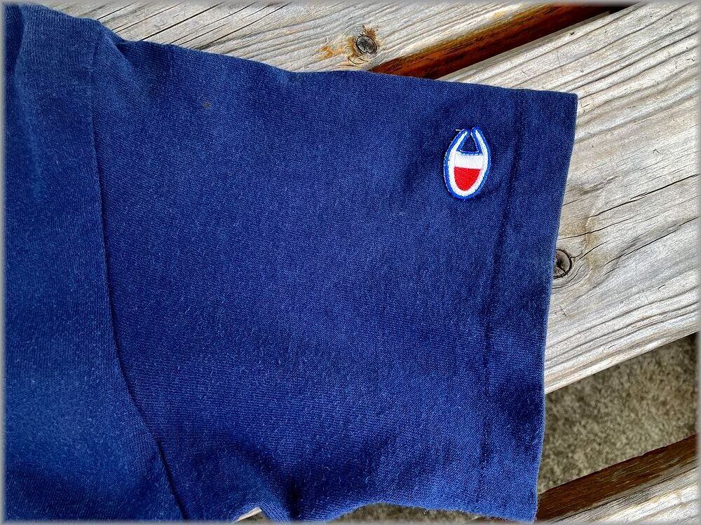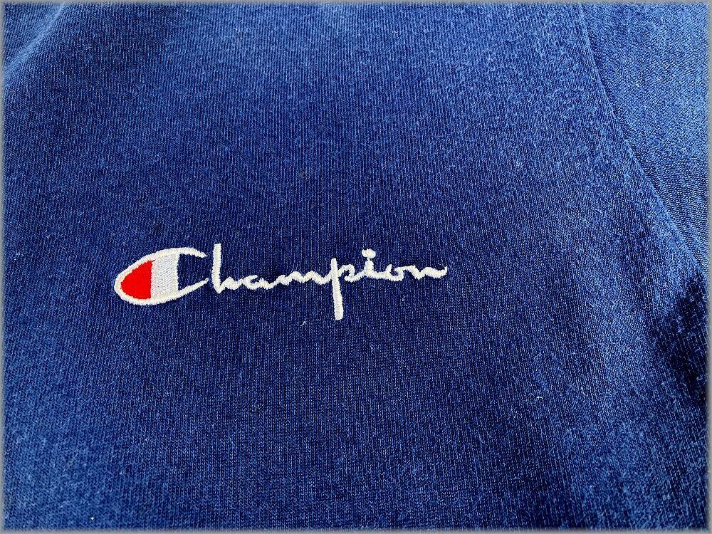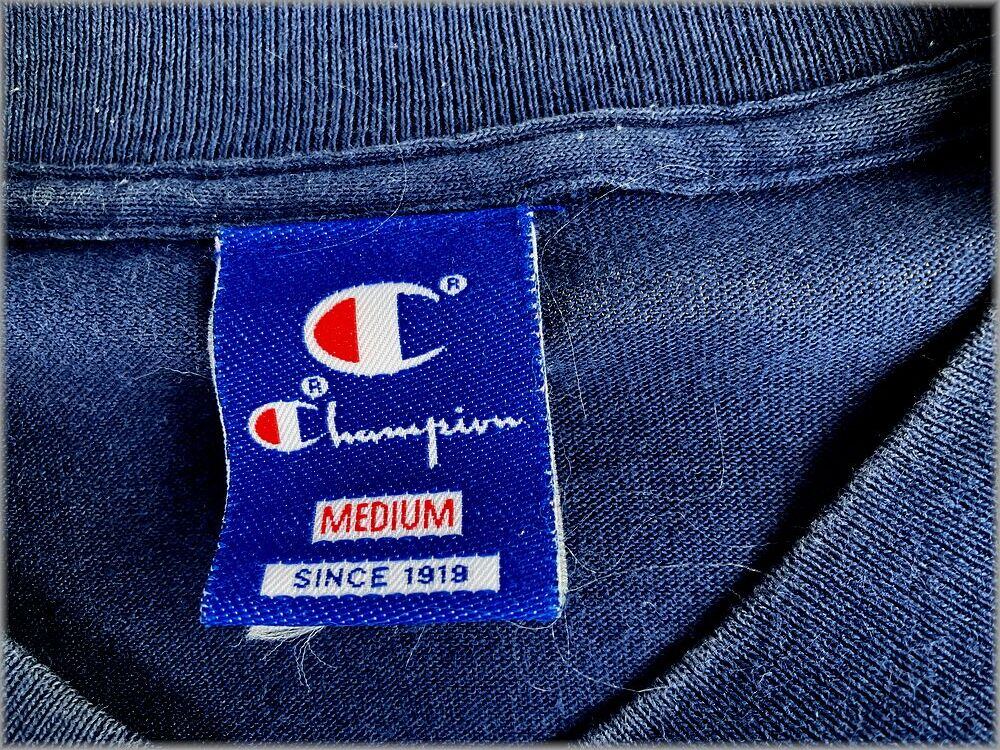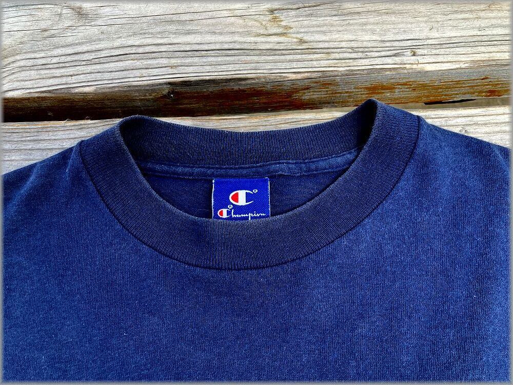 ★CHAMPION チャンピオン 90s USA製 刺繍タグ Tシャツ size M ロゴプリント 紺色★検索 ビンテージ トリコタグ アメリカ 古着
