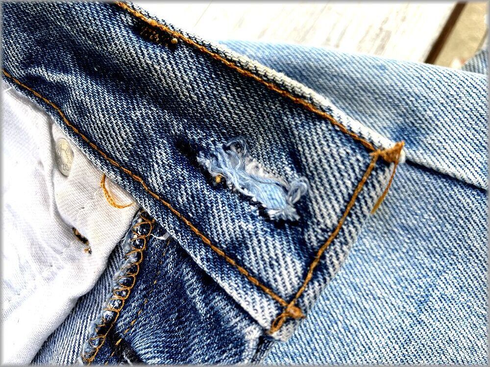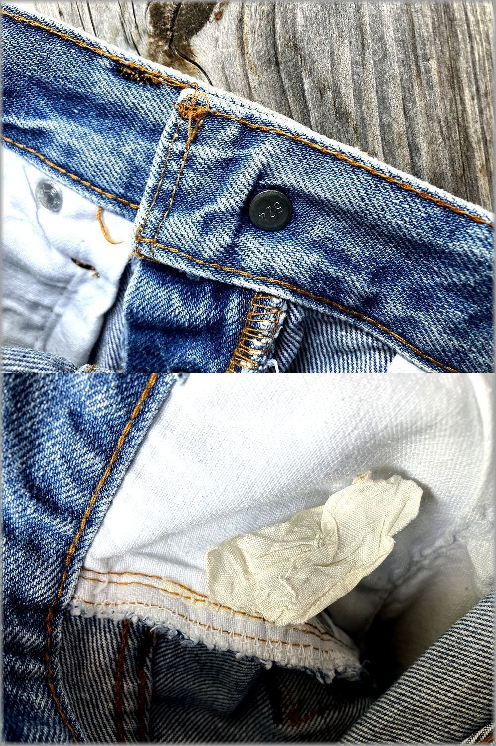 USEDです。紙パッチが破れて欠損しています。デニムに色落ちがあります。主に裾に擦れたダメージがあります。デニムの軽い汚れがあります。トップボタンのホールに多少の解れがあります。目立つような問題はないので、USEDとしては問題無く着用いただける状態かと思います。状態を一つ一つ説明するのは難しいので、状態が心配な方は店頭でご確認ください。