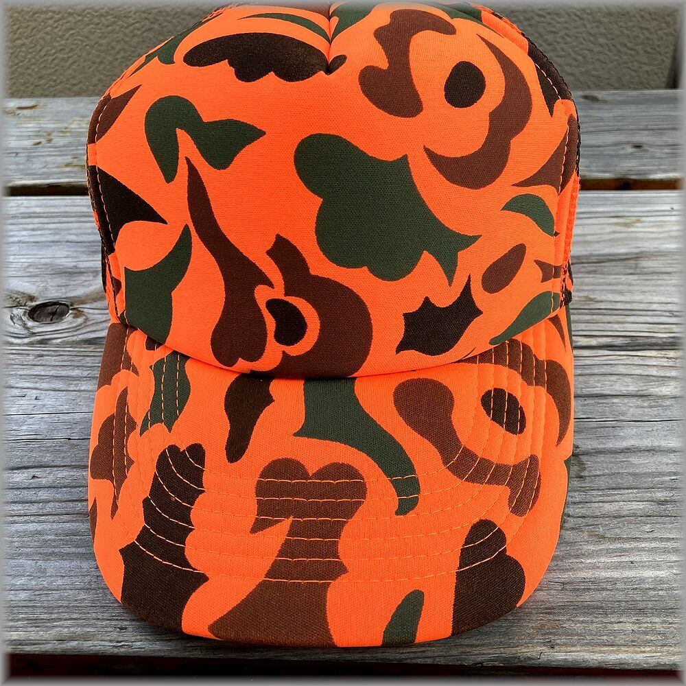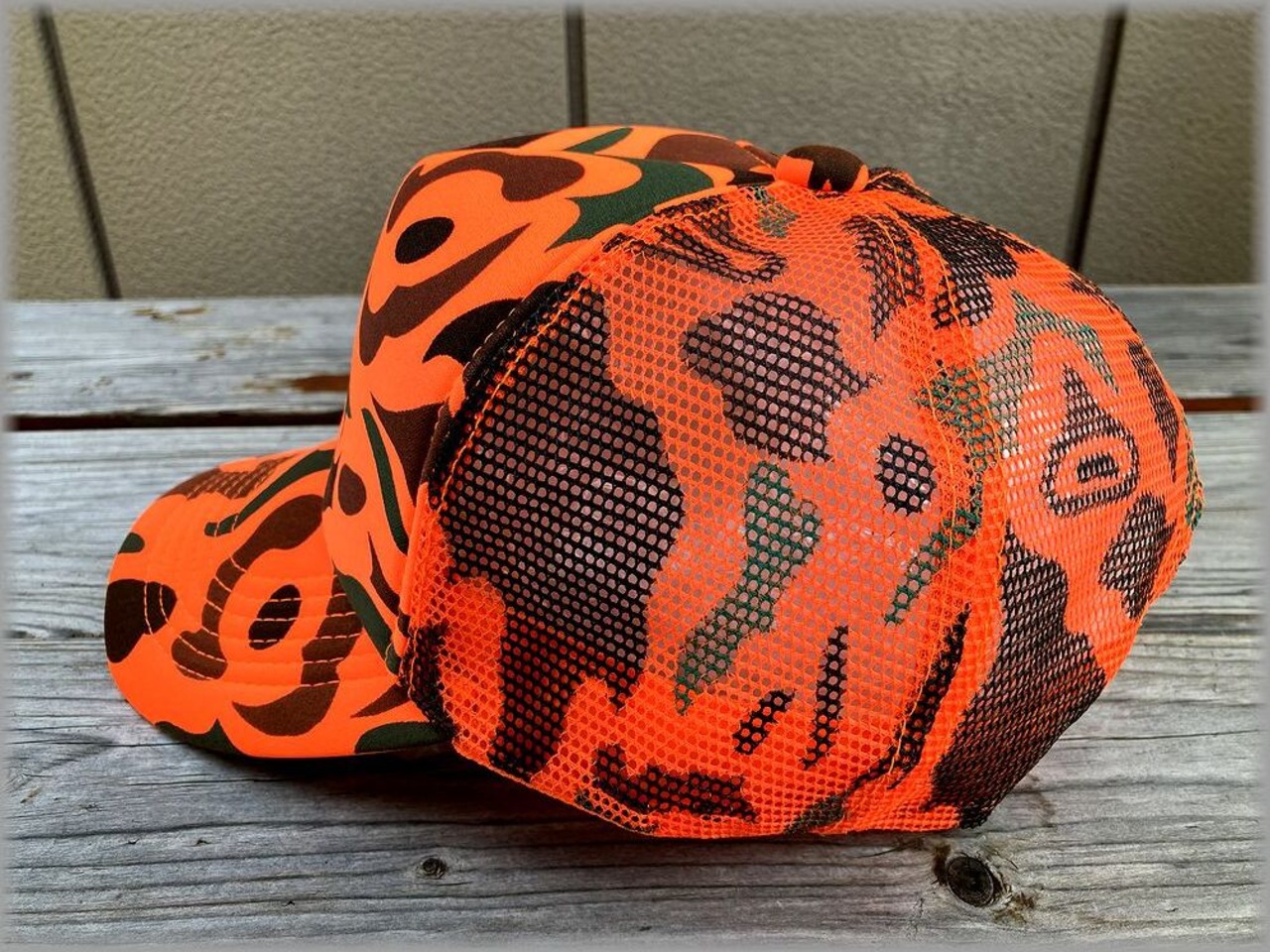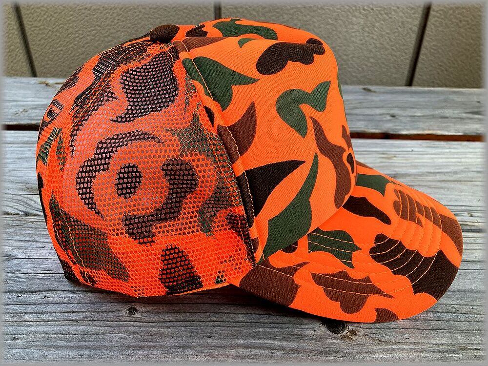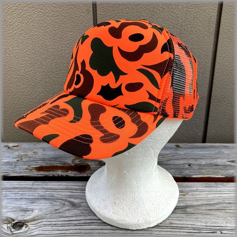 ★デッドストック 90s メッシュ キャップ 迷彩柄 オレンジ★検索 ビンテージ 帽子 トラッカー ハット カモフラ スナップバック 古着