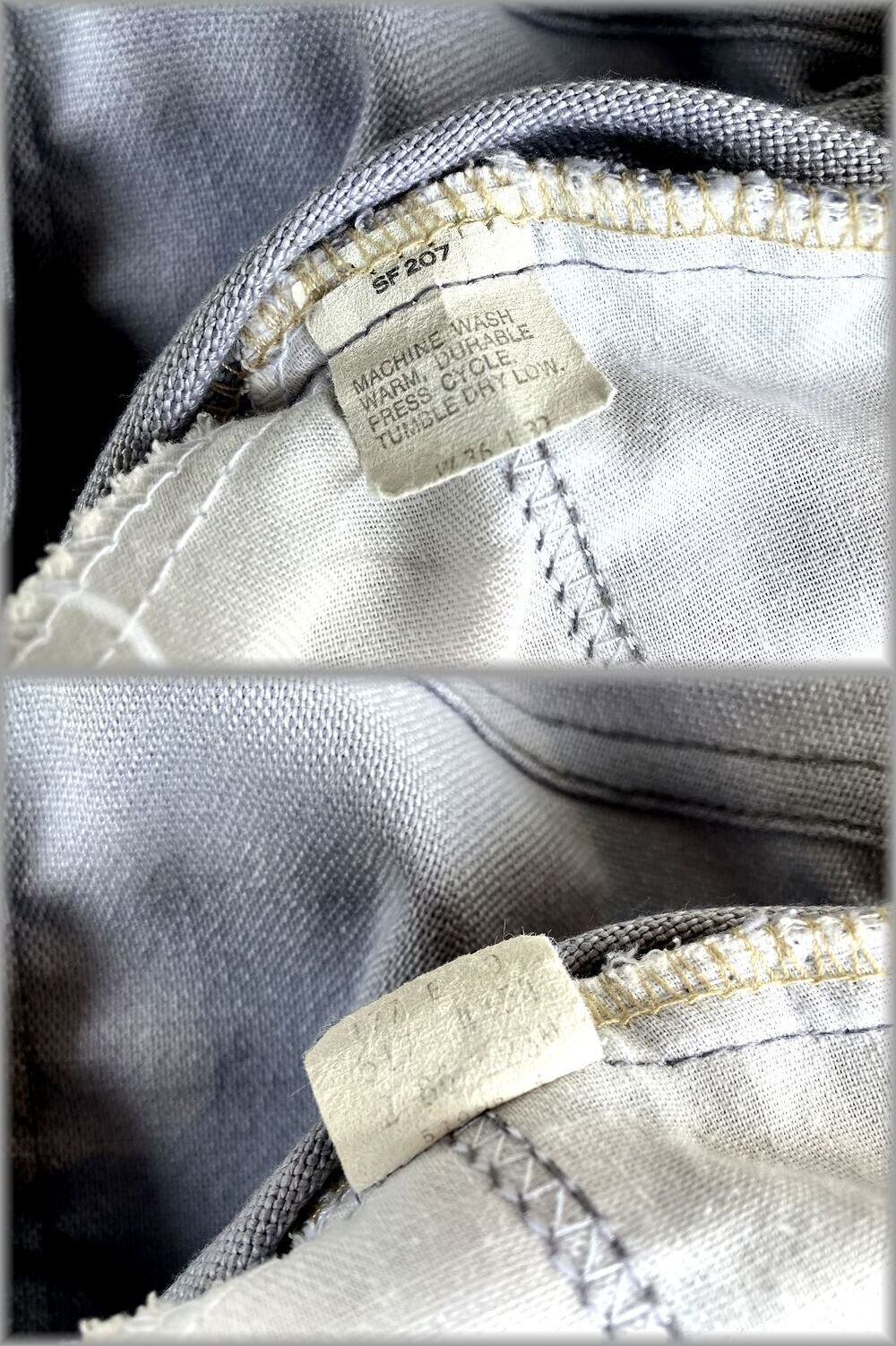 USEDです。ヒップポケットの黒タブがカットされています。多少の汚れがあります。目立つ程の問題はないので、USEDとしては問題無く着用いただける状態かと思います。状態が心配な方は店頭でご確認ください。
