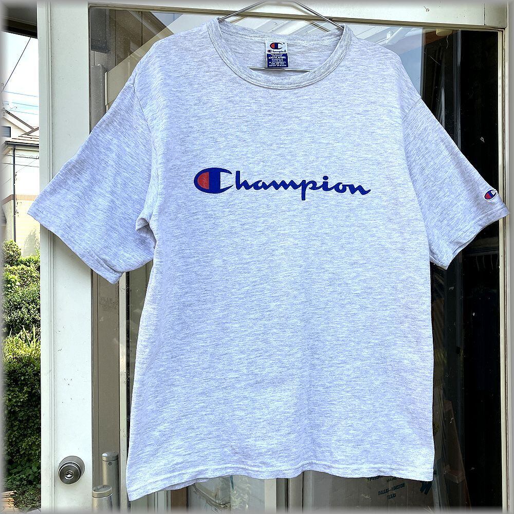 ★チャンピオン 90s 刺繍タグ Tシャツ ロゴプリント size M 霜降りグレー 杢★検索 ビンテージ トリコタグ 80s アメリカ USA製 古着