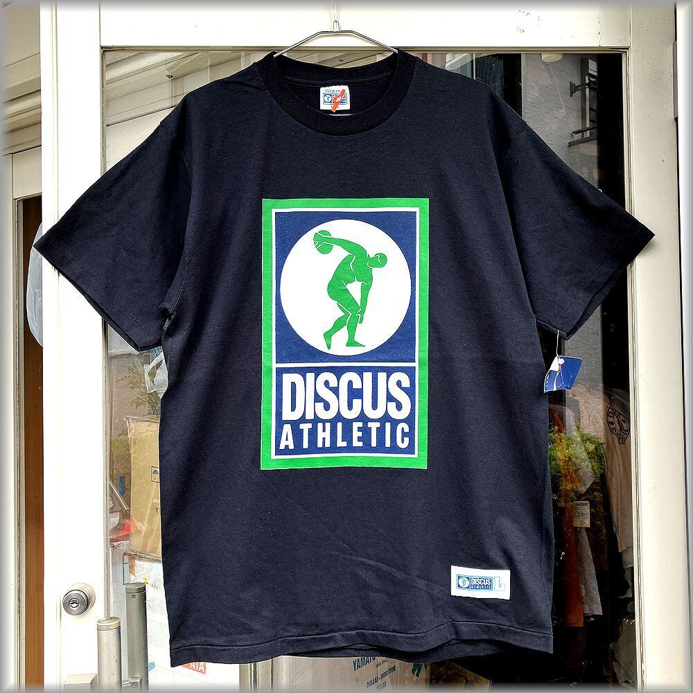 ★DISCUS ディスカス デッドストック 90s USA製 Tシャツ size L ブラック 黒★検索 ビンテージ 企業物 古着 ロゴ プリント アメリカ ヘインズ フルーツオブザルーム
