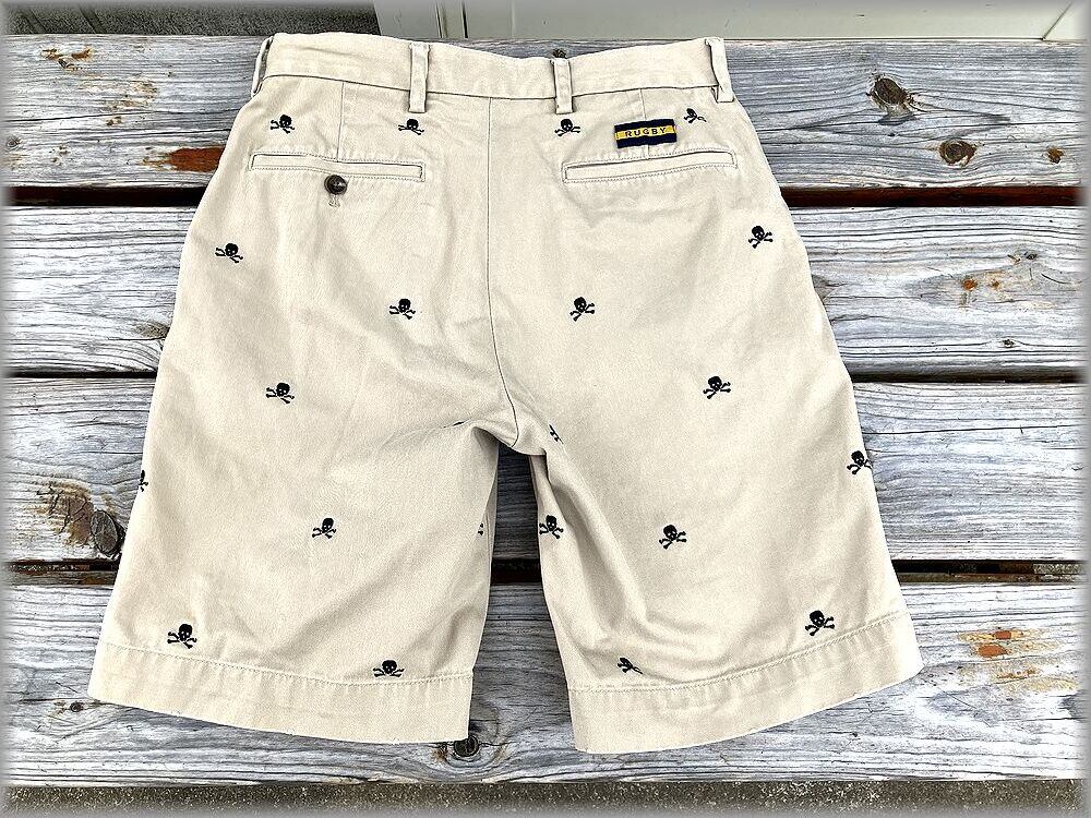 ★ポロ ラルフローレン ラグビー コットン ショーツ ショート パンツ スカル刺繍 W28 76cm位★検索 チノ エンブロイダリー rrl ドクロ 古着