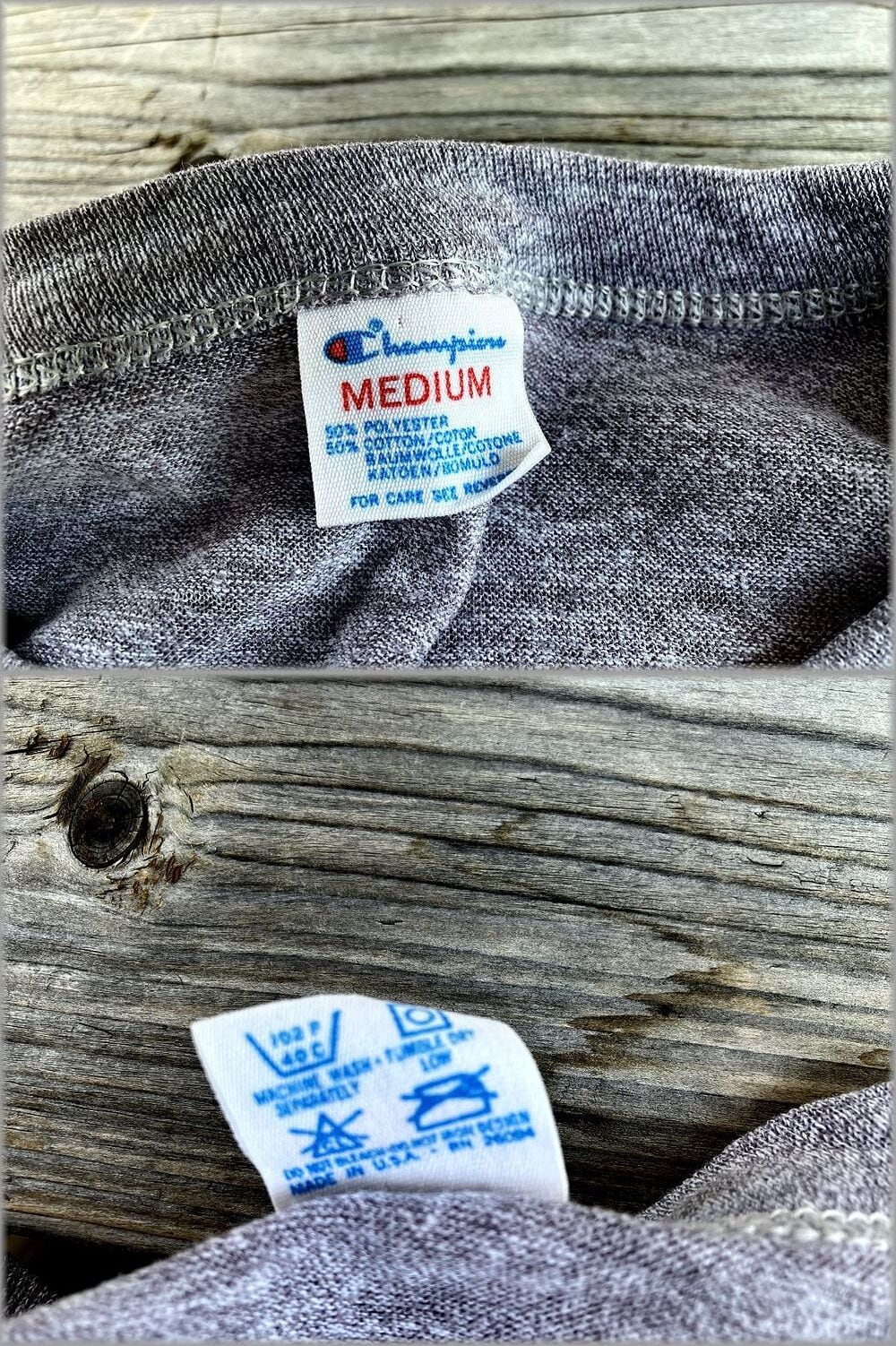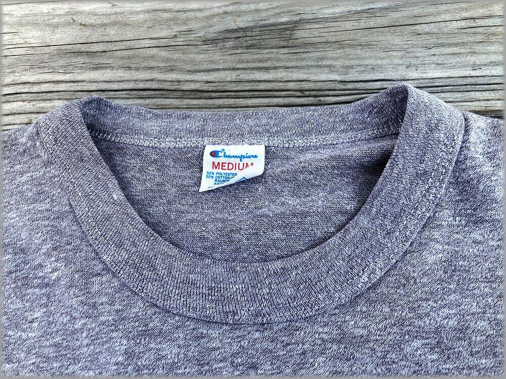 ★Champion チャンピオン 80s USA製 トリコタグ Tシャツ 3段 染み込みプリント size M 霜降りグレー★検索 ビンテージ 70s 90s バータグ カレッジ アメリカ 古着