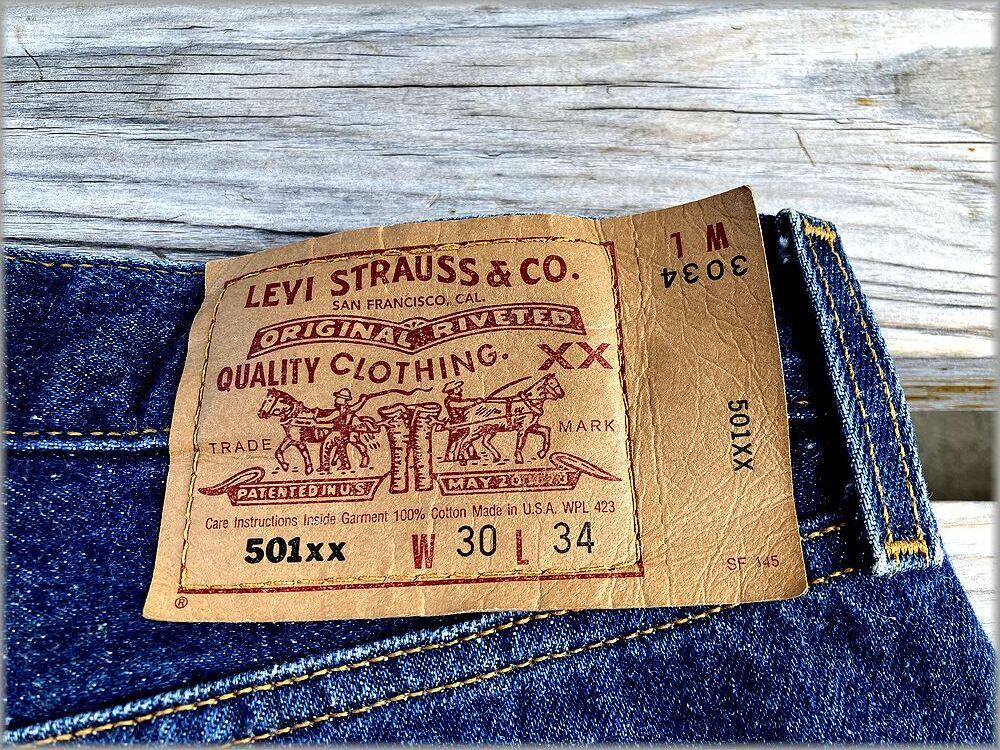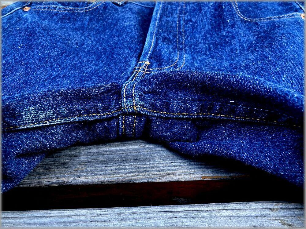USEDです。少し色落ちが見られますが、全体的にまだ毛羽立ちの残る濃いデニムです。特筆するような汚れやダメージはなく、古い物としては良好な状態です。