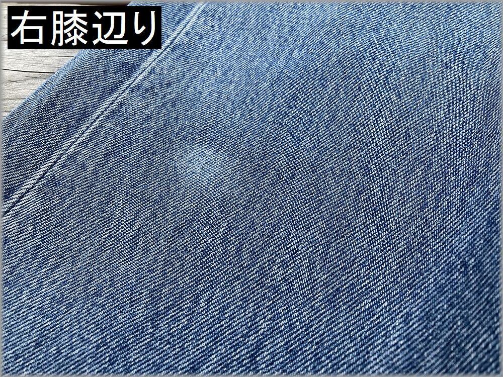 USEDです。デニムの色は元々加工でこれ位の色合いだったかと思いますが、右膝に若干スポットで色落ちがあります。(画像参照)特筆するようなダメージや汚れはなく、USEDとしては問題無く着用いただける状態です。