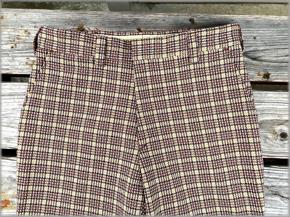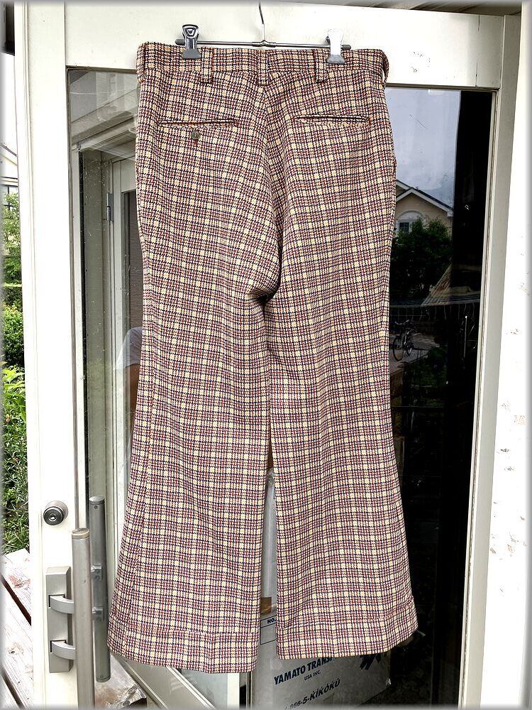 ★70s 80s チェック柄 フレア パンツ W80cm位 タロンジッパー★検索 ビンテージ スラックス ベルボトム ヒッピー ディスコ アメリカ 古着