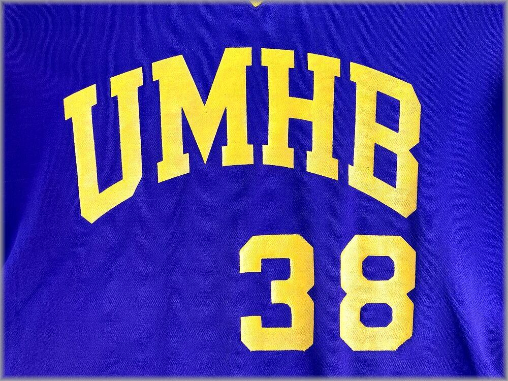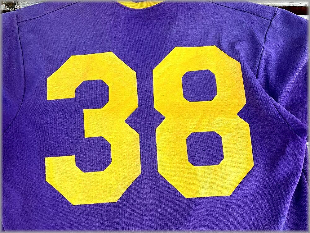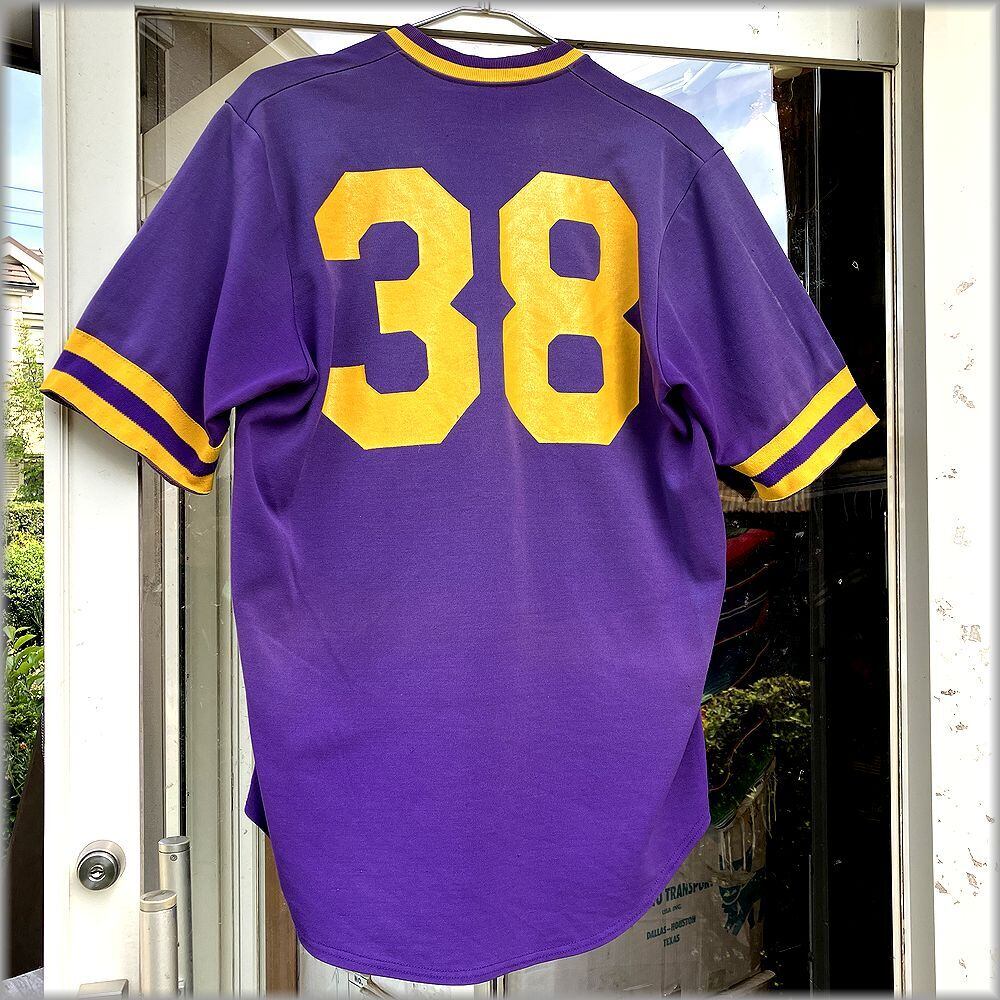 ★Champion チャンピオン 80s USA製 トリコタグ Tシャツ UMHB 38 size L 紫×黄★検索 ビンテージ カレッジ ベースボール フットボール アメリカ アメカジ 古着