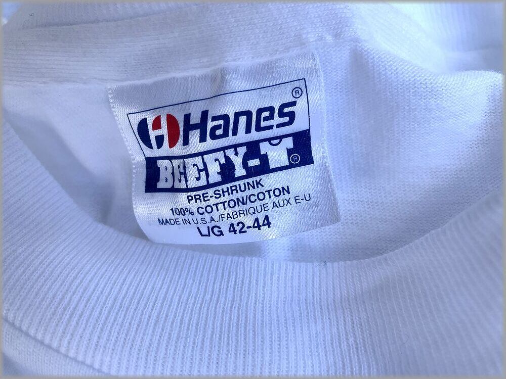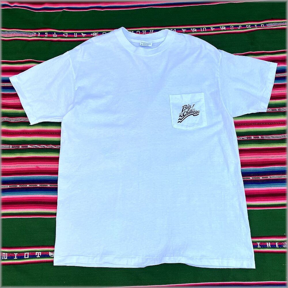 ★HANES ヘインズ BEEFY-T デッドストック 1ウォッシュ 80s 90s USA製 胸ポケット Tシャツ サーフ プリント size L★検索 ビンテージ オールド サーフィン ポケT アメリカ 古着 フルーツオブザルーム