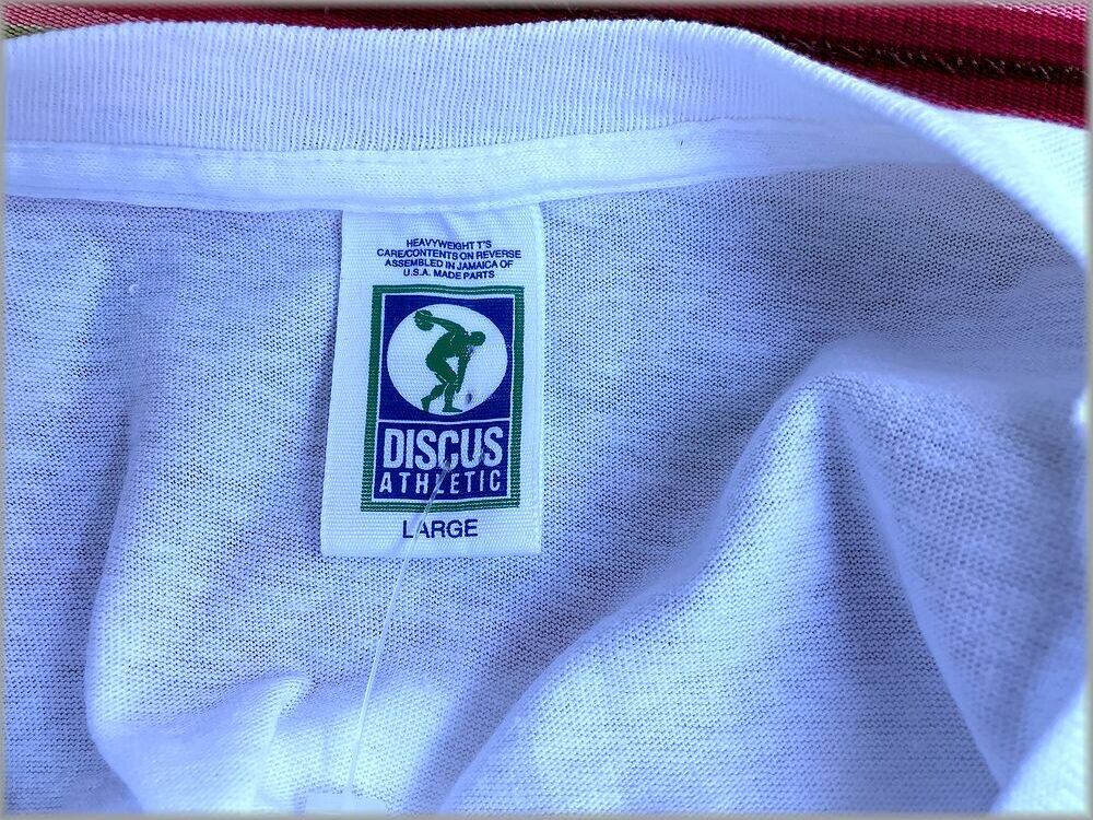 ★DISCUS ディスカス デッドストック 1ウォッシュ 90s Tシャツ ヘビーウェイト ロゴ プリント size L★検索 ビンテージ 企業物 アメリカ 古着 USA製 ヘインズ フルーツオブザルーム