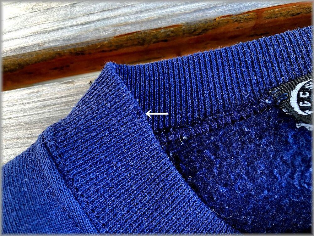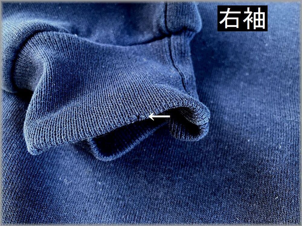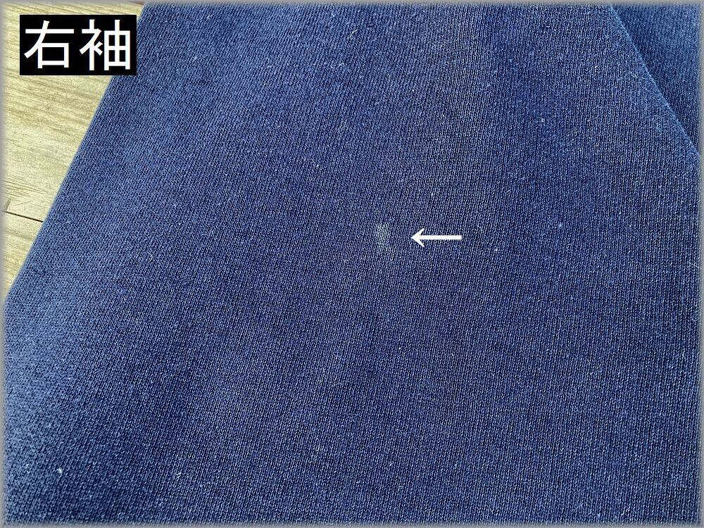 USEDです。リブや右袖に画像矢印先の小キズや軽い汚れがある位で、目立つような問題はありません。USEDとしては問題無く着用いただける状態です。