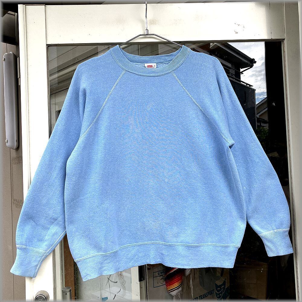 ★Henes ヘインズ WIND SHIELD 60s ビンテージ ラグランスリーブ スウェット size L 水色 無地★検索 オールド トレーナー 50s 70s アメリカ 古着 チャンピオン ラッセル