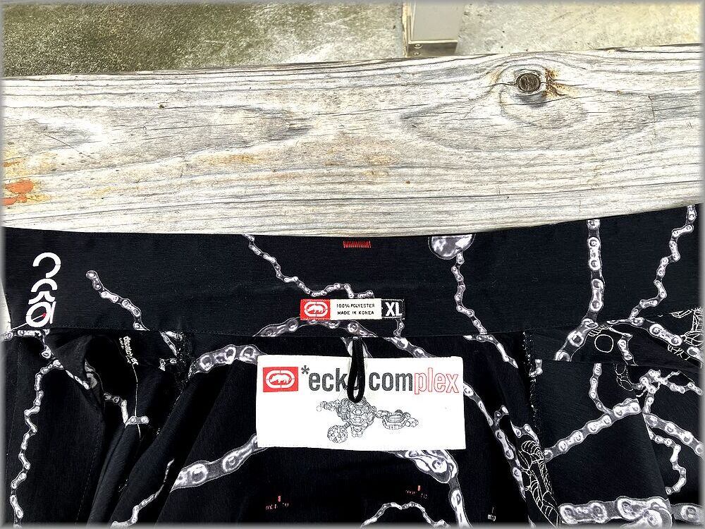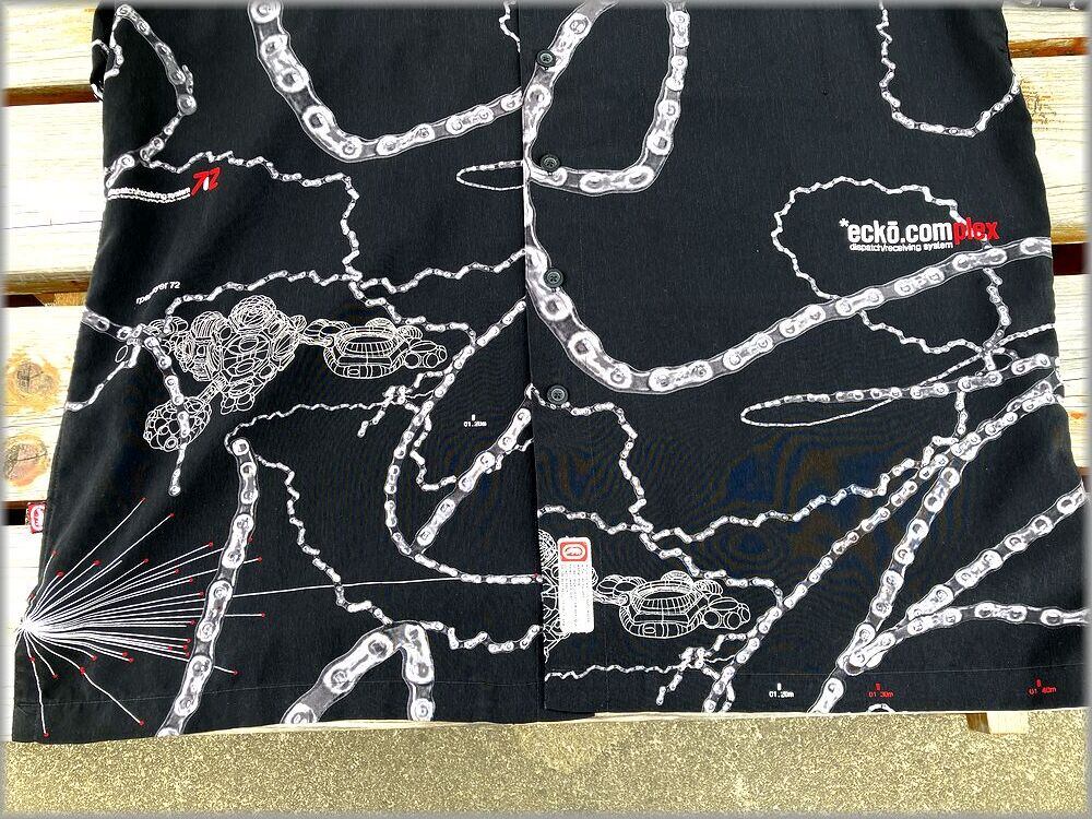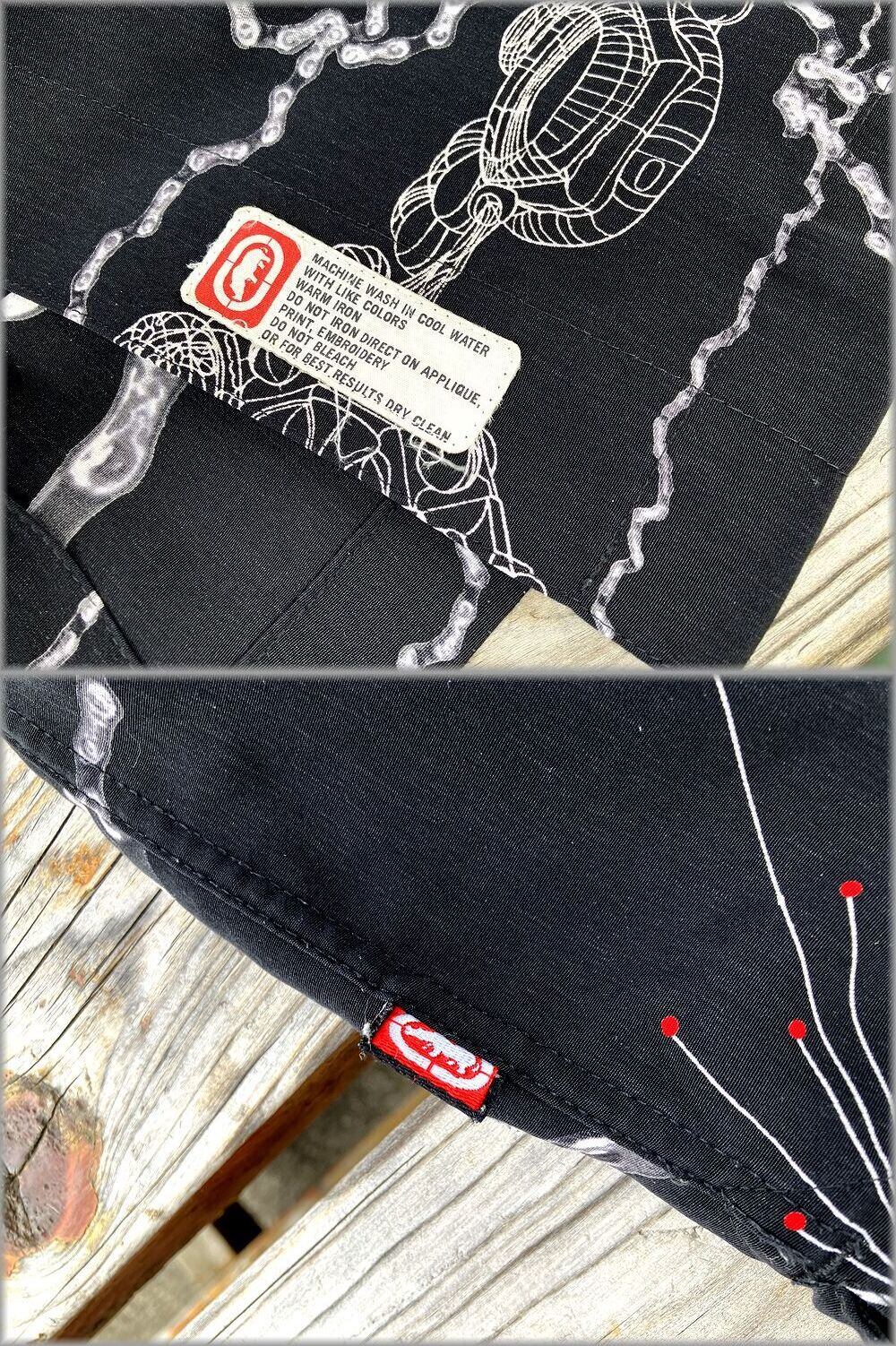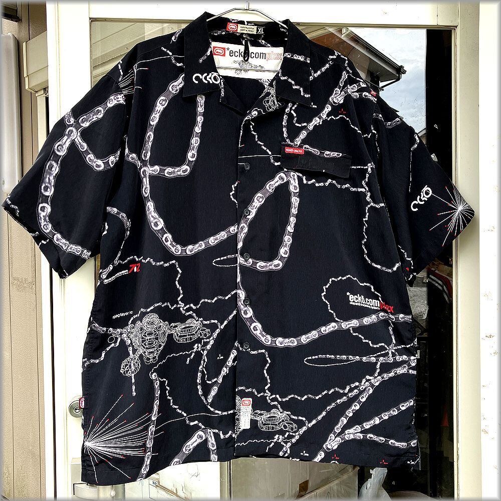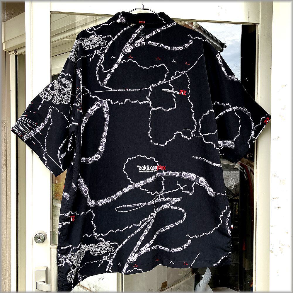 ★ECKO UNLTD ボックス型 開襟 半袖シャツ size XL ビッグシルエット ブラック 黒★検索 ビンテージ オープンカラー 総柄 90s 00s Y2K ヒップホップ ストリート 古着