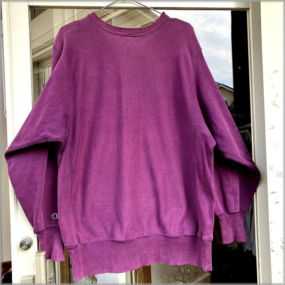 ★90s USA製 刺繍タグ チャンピオン リバースウィーブ size XL 無地 紫 パープル★検索 ビンテージ スウェット トレーナー 古着 トリコタグ