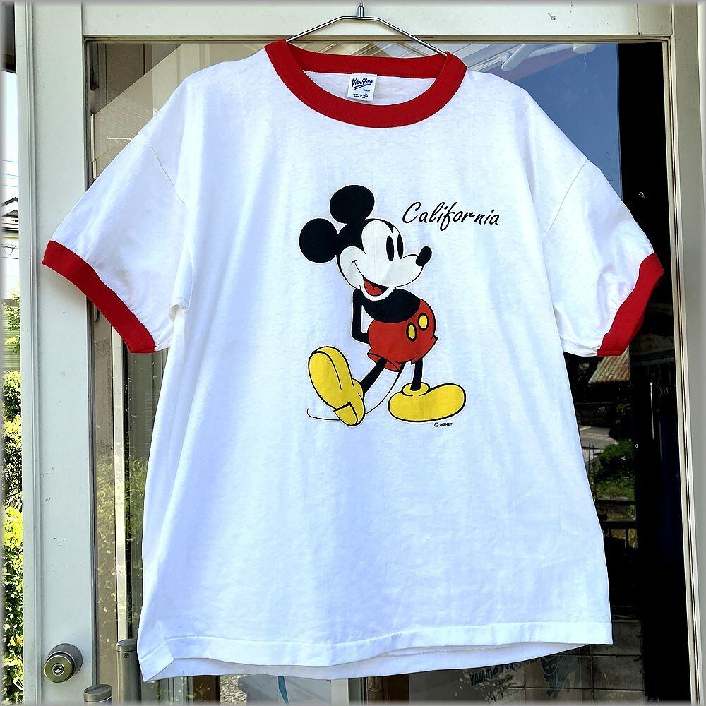 ★ミッキーマウス デッドストック 90s USA製 リンガー Tシャツ Velva Sheen size L 大きめ 赤★検索 ビンテージ ディズニー アメリカ 古着