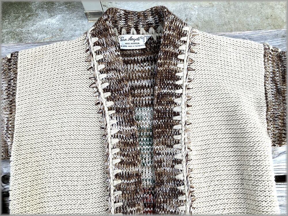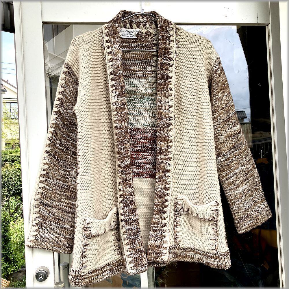 ★San Angels 70s ビンテージ レディース アクリル カーディガン size L アメリカ買付★検索 ニット セーター ジャケット 古着 60s 80s 90s