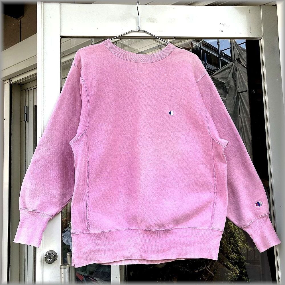 ★90s USA製 刺繍タグ チャンピオン リバースウィーブ ピンク 無地 size L★検索 ビンテージ スウェット トレーナー 古着 トリコタグ