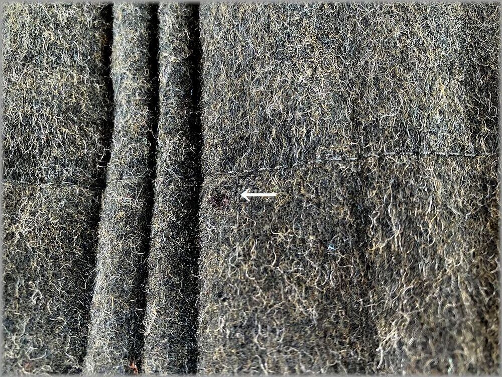 USEDです。画像矢印先(フロントのジッパー付近)のような虫食いダメージはありますが、目立つ程の問題はありません。使用感は少なめで、USEDRとしては問題無く着用いただける状態です。