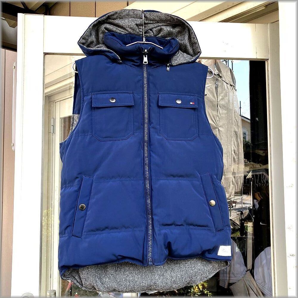 ★トミーヒルフィガー フード付き リバーシブル ダウン ベスト size M★検索 ツイード ジャケット パーカー フーディ 古着 tommy hilfiger