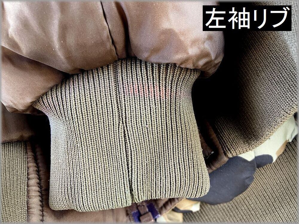 まだノンウォッシュで使用感もほとんどありません。左袖リブ(茶色のシェル側)に少し変色がある位で(画像参照)、特筆するような汚れやダメージはありません。全体的にデッドストックに近い感覚で着用できる美品です。