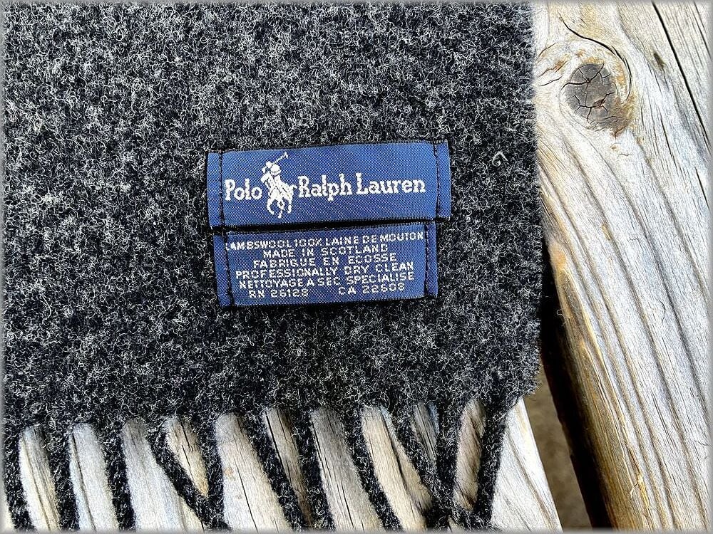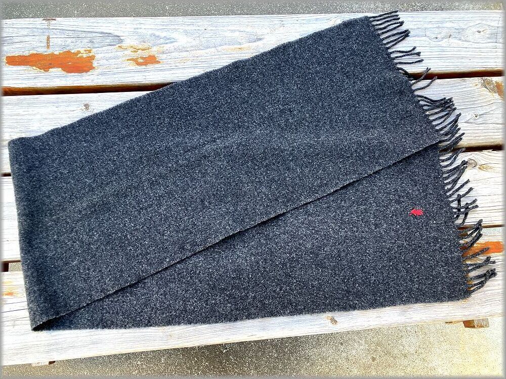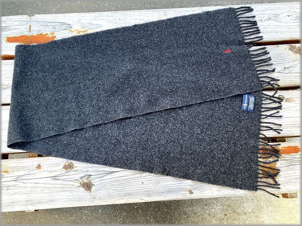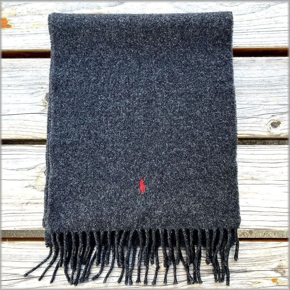 ★ポロ ラルフローレン スコットランド製 ラムズウール マフラー チャコール ③★