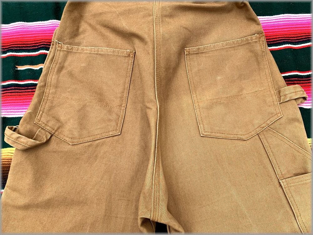 ★ROUND HOUSE ラウンドハウス USA製 ブラウンダック オーバーオール ダブルニー W32L32★検索 ワーク ペインターパンツ つなぎ アメリカ 古着 90s ビンテージ
