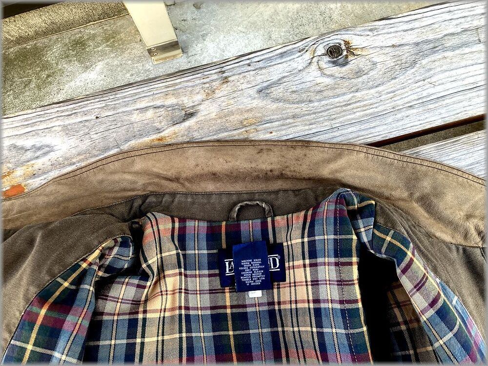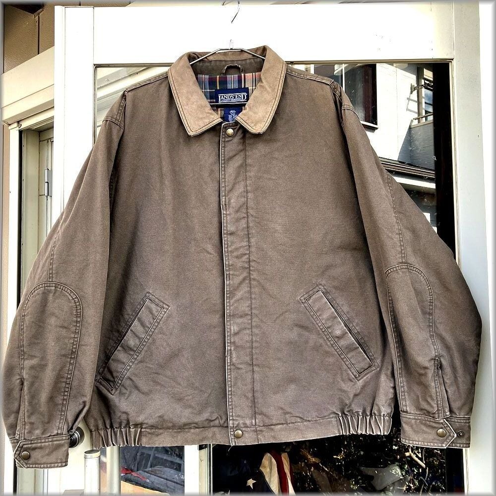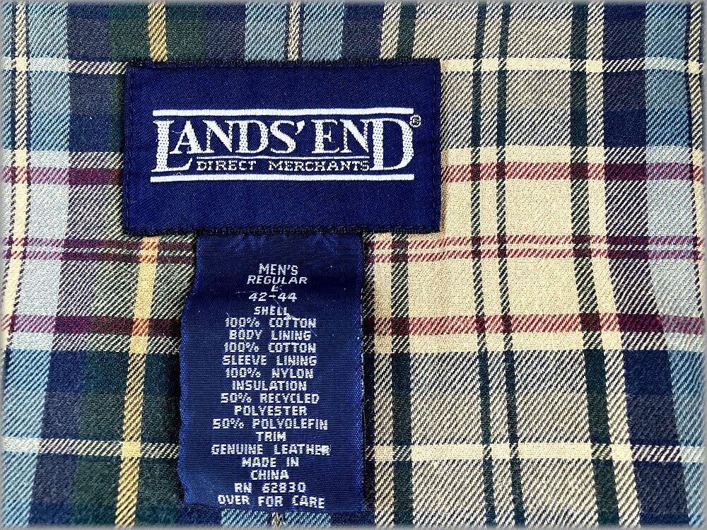 ★ランズエンド LANDS'END 90s ジャケット ブルゾン ダック地 レザー襟 size L ビッグシルエット★検索 ビンテージ アメリカ 古着