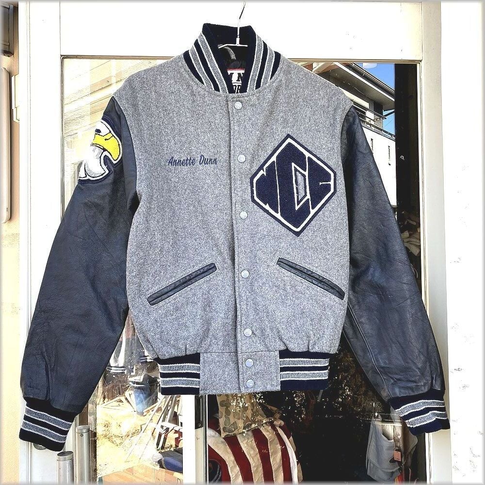 ★OMNI SPORTS オムニスポーツ 00s 袖革 スタジャン size XS★検索 ジャケット メルトン ウール レザー アメリカ 古着 ブルゾン ビンテージ