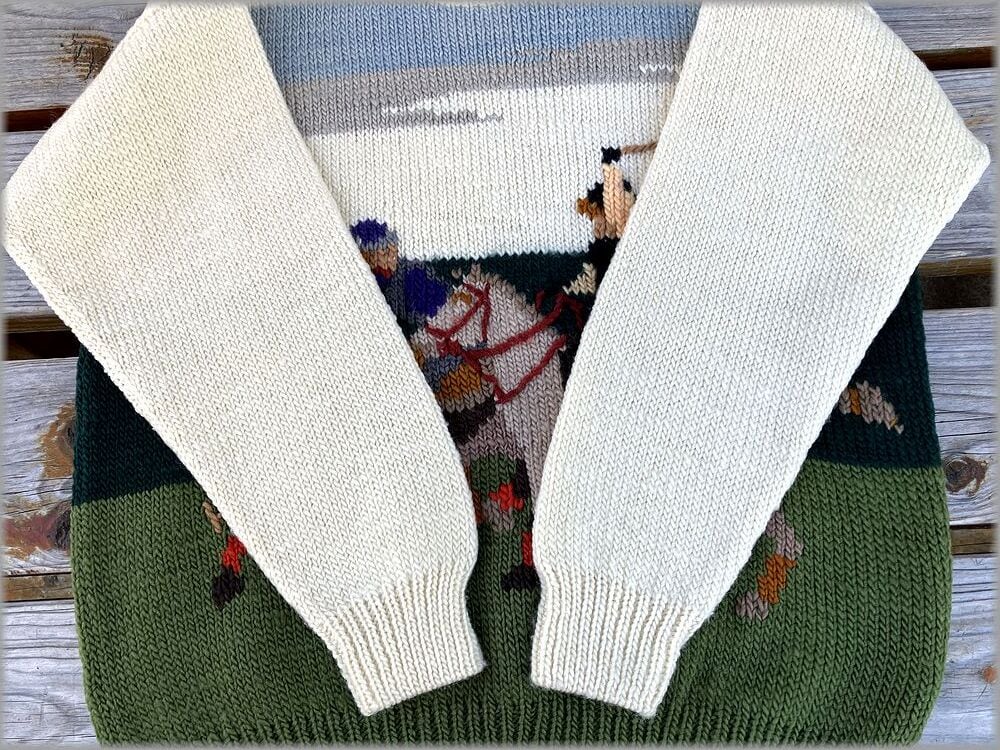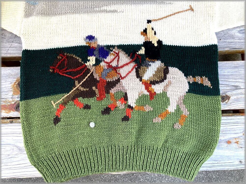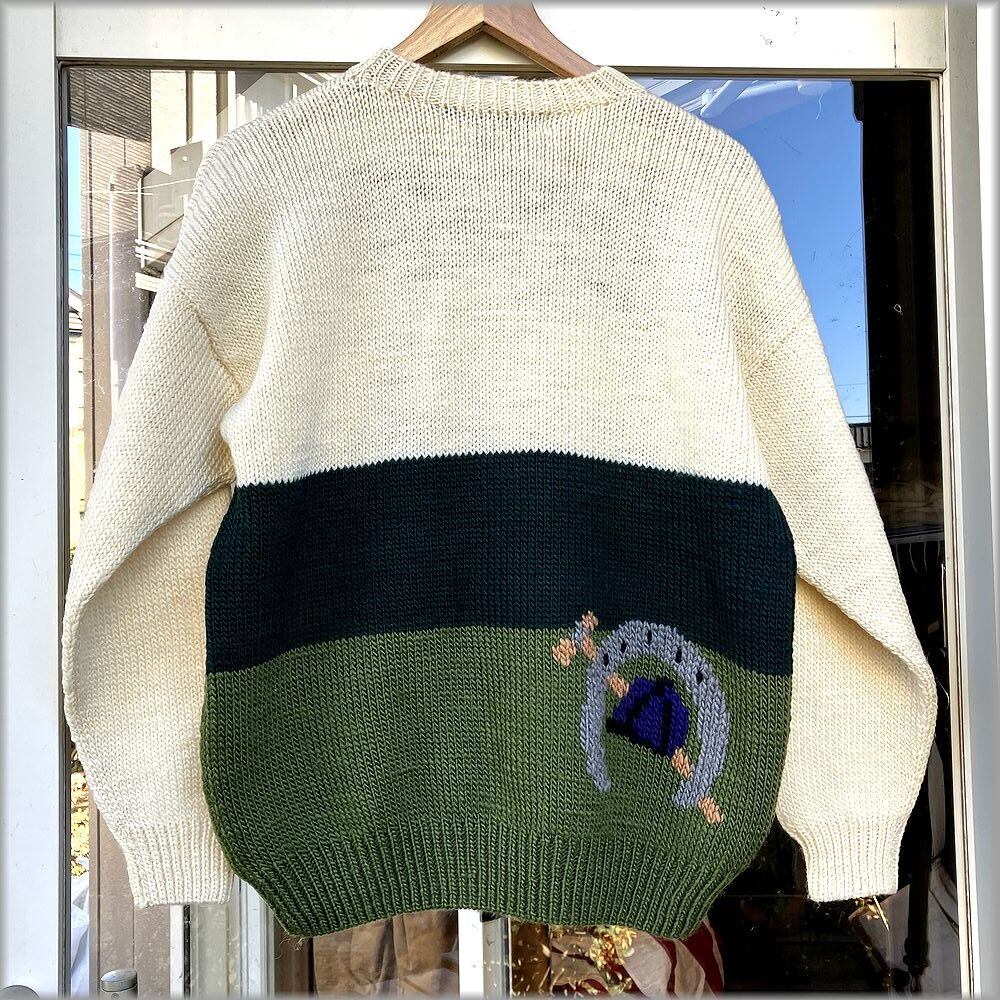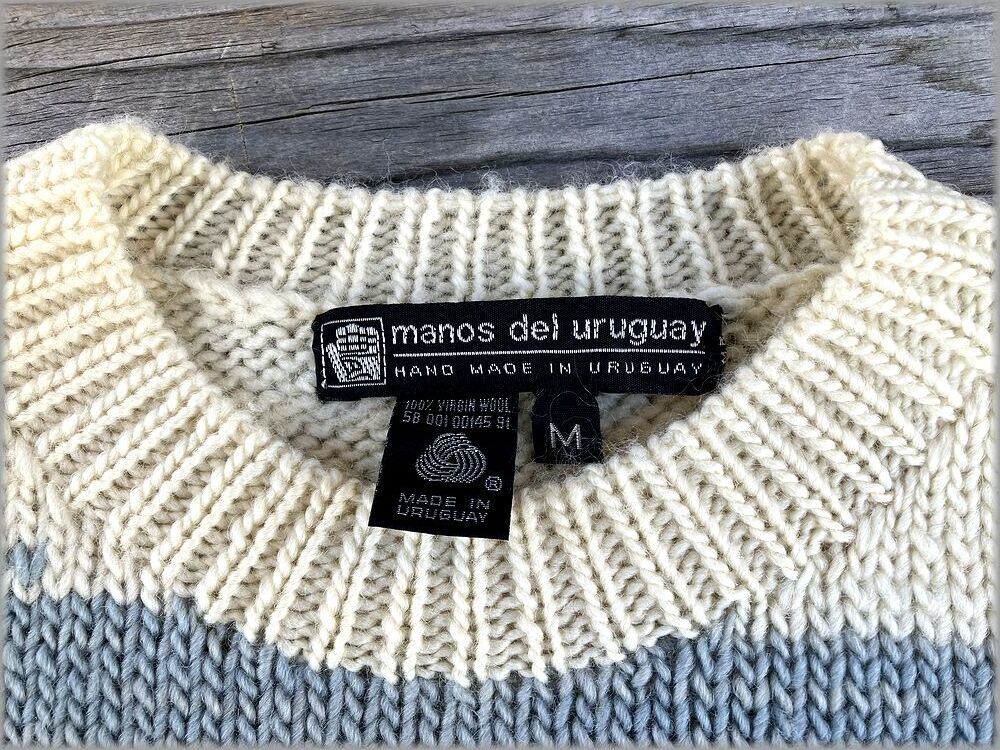 ★manos del uruguay ウルグアイ製 100% VIRGIN WOOL ハンドメイド ニット セーター size M★検索 ウール 古着 ビンテージ ポロ 馬