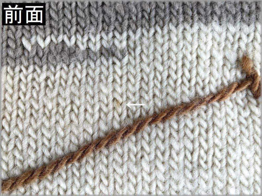USEDです。画像矢印先の毛糸の色ムラ的な部分がありますが、目立つような問題はありません。使用感は少なめで、USEDとしては良好な状態です。