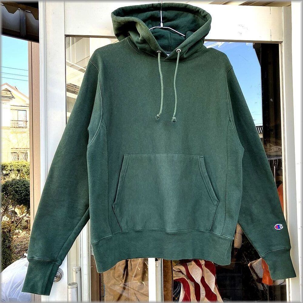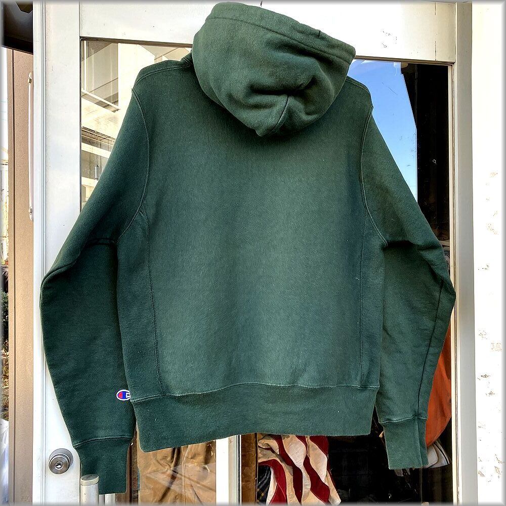 ★00s~ チャンピオン リバースウィーブ スウェットパーカー 無地 濃緑 size M★検索 目無し トレーナー アメリカ USA 古着 ジャケット