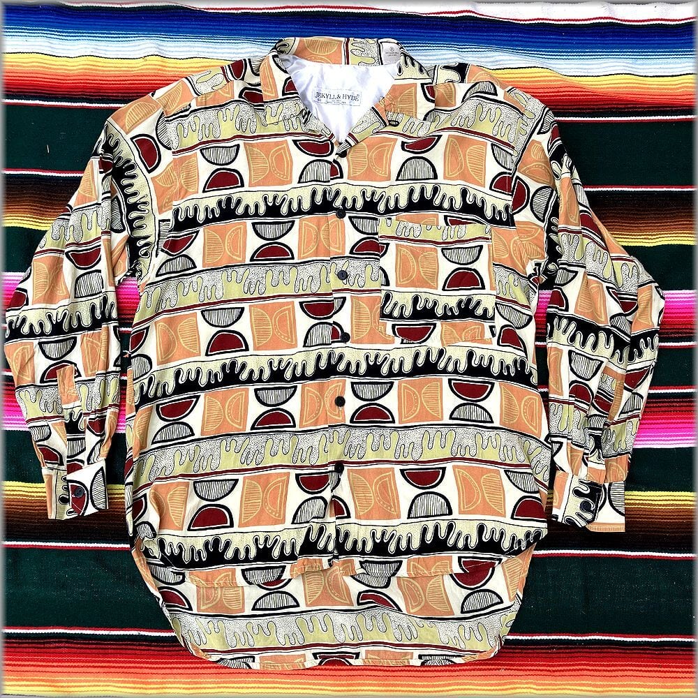 ★JEKYLL&HYDE ジキル&ハイド 英国製 開襟 長袖 レーヨンシャツ size M★検索 オープンカラー 90s ビンテージ イギリス ユーロ ヨーロッパ 古着