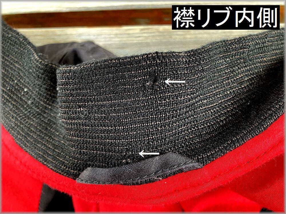 USEDです。襟や裾のリブに主に画像部分の虫食いダメージがあります。全体的に目立つ程の問題はなく、USEDとしては良好な部類の状態かと思います。