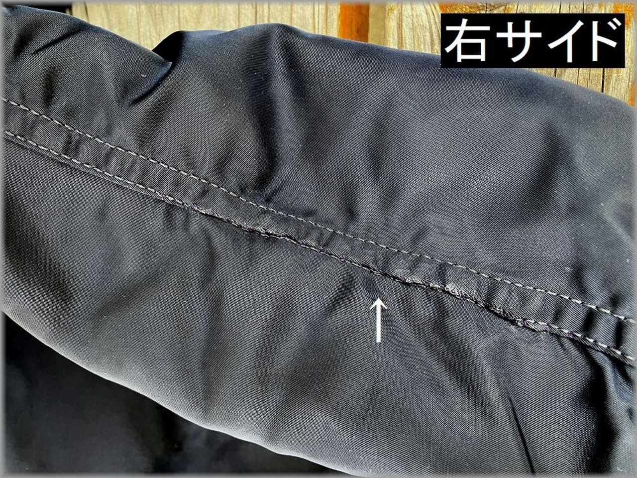 USEDです。ジッパーのメッキに多少の剥げがあります。画像矢印先の縫い目部分にリペアがあります。目立つような問題はなく、USEDとしては良好な状態かと思います。
