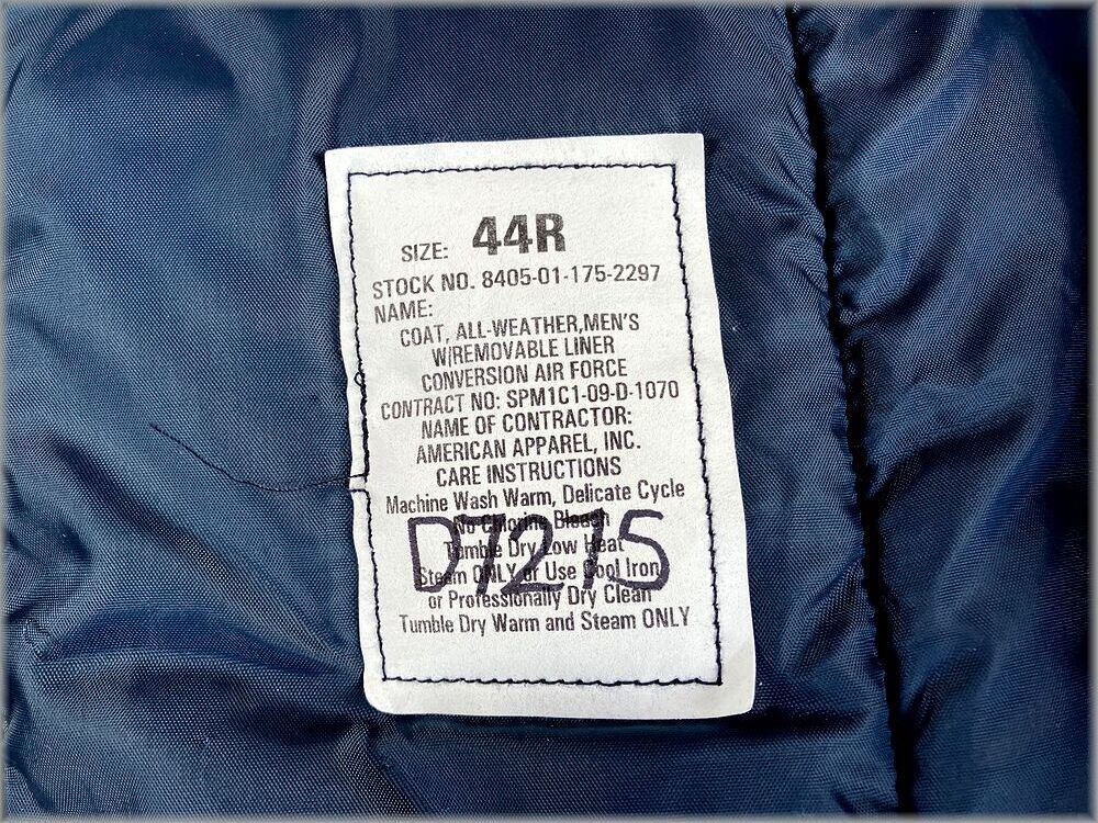 米軍 USAF 09年 COAT, ALL-WEATHER, MAN'S, W/REMOVABLE LINER