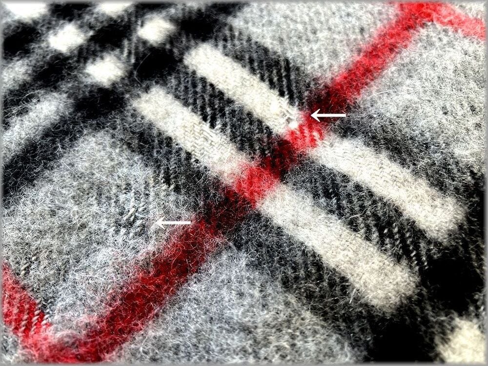USEDです。主な部分ですが画像矢印先の虫食いのダメージがあります。目立つ程ではないので、USEDとしては問題無く着用いただける状態かと思います。状態が心配な方は店頭でご確認ください。