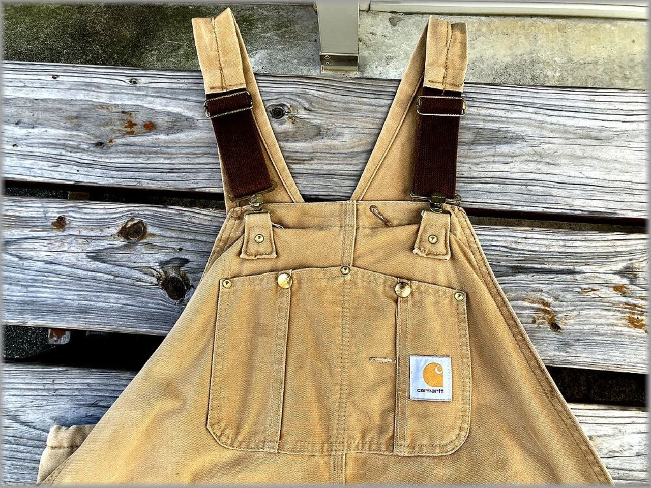 ★カーハート 90s ブラウンダック オーバーオール ダブルニー キルティングライナー ビッグサイズ★検索 ビンテージ ペインターパンツ カバーオール USA製 アメリカ 古着