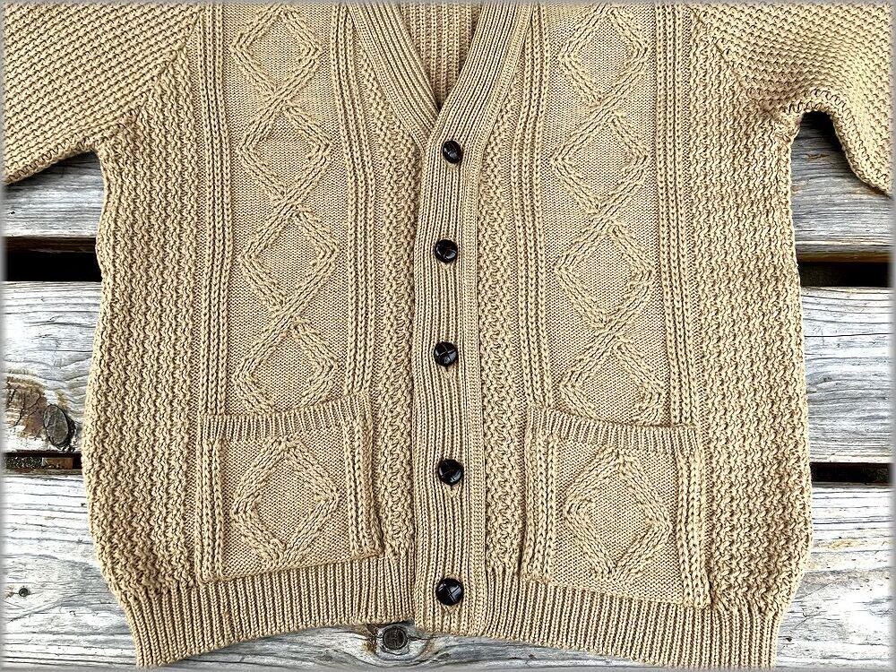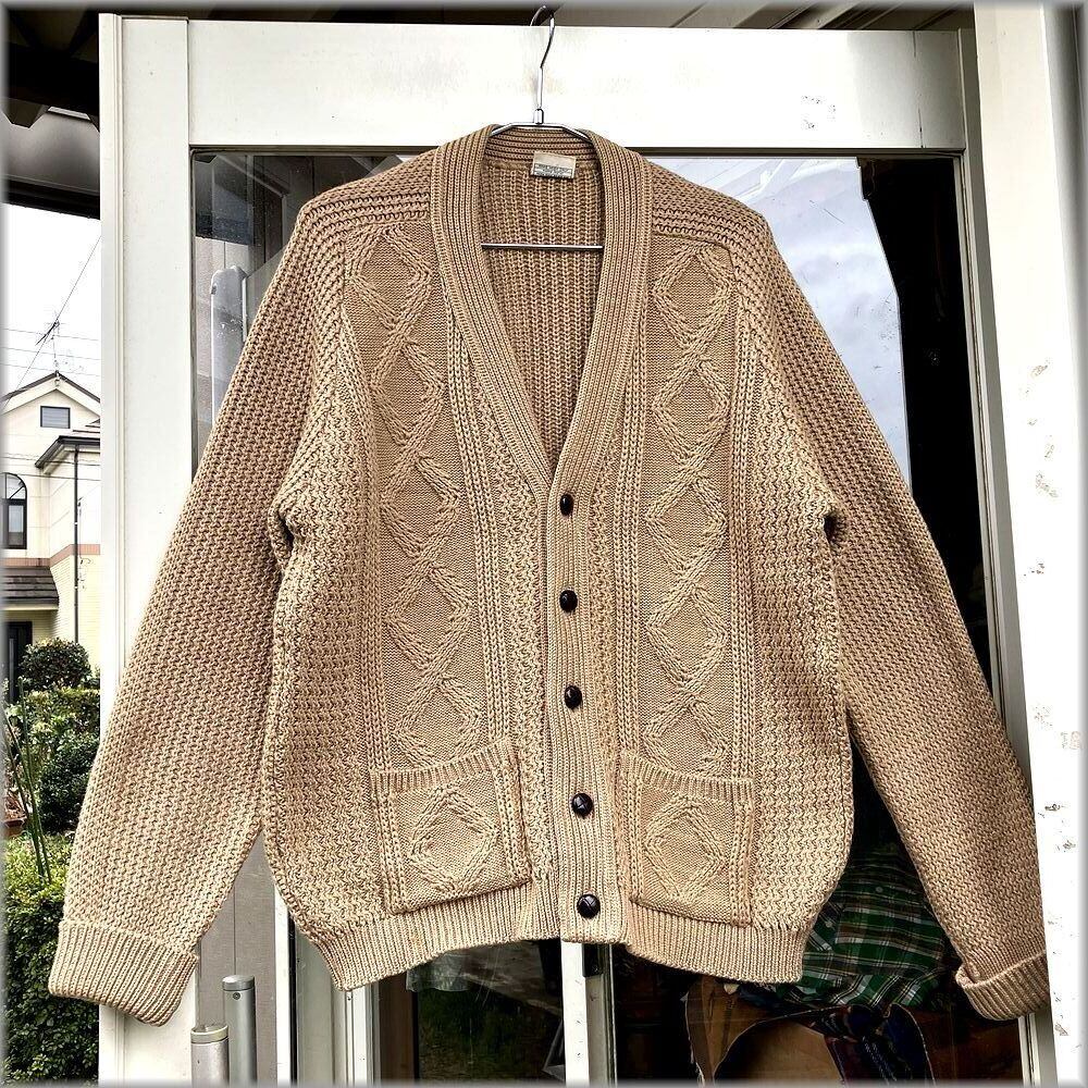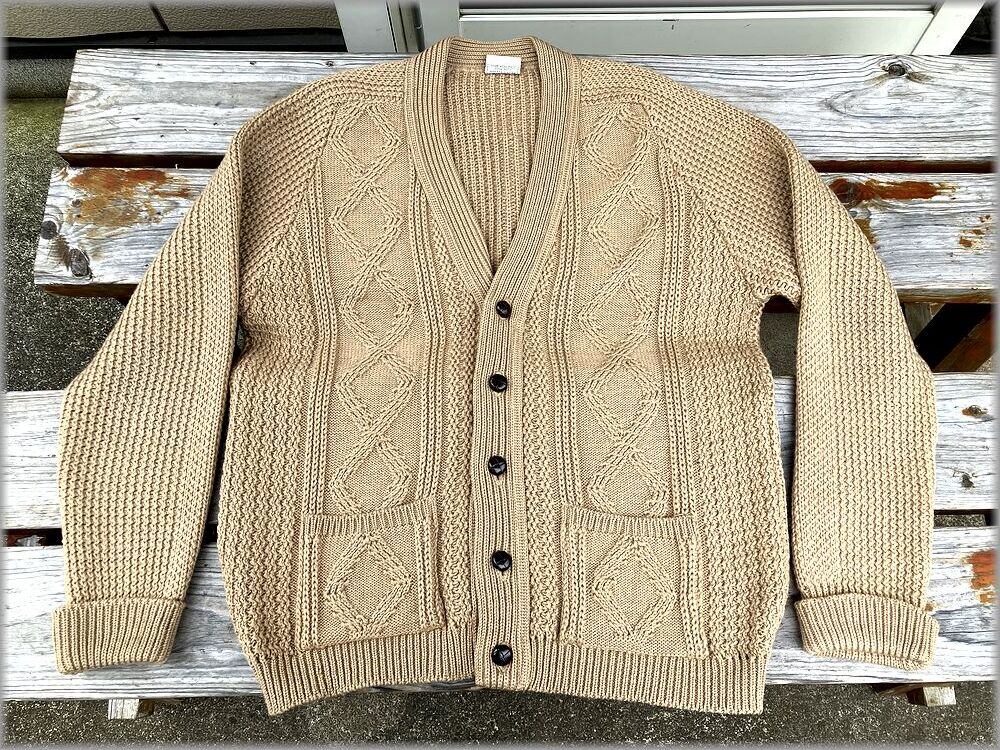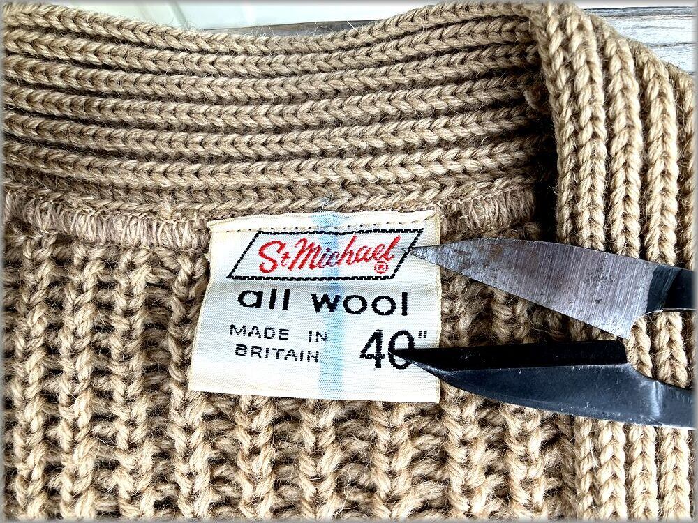 ★St Micheal ビンテージ 英国製 ウール ニット カーディガン size 40 アメリカ買付★検索 セーター ジャケット ローゲージ アラン 古着