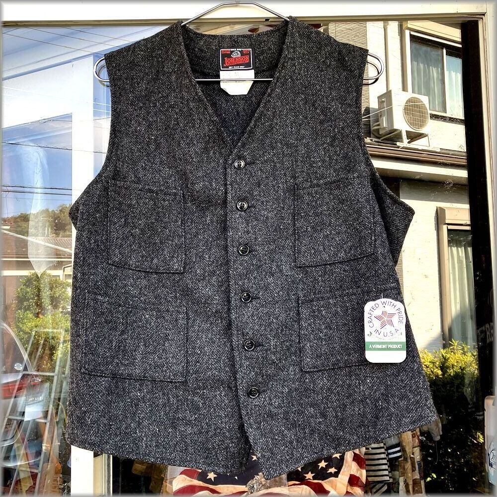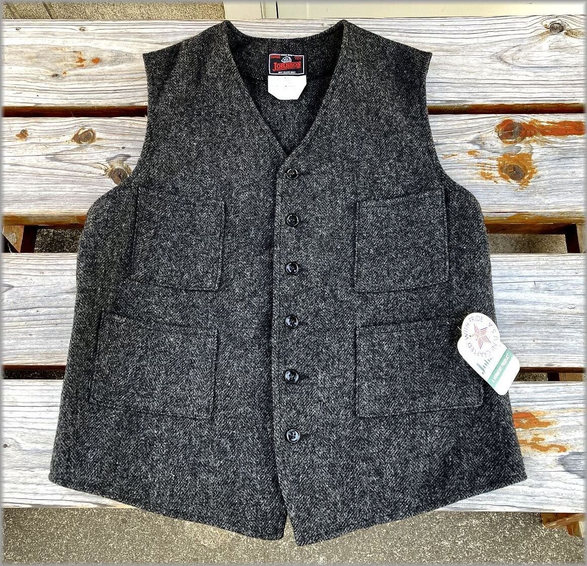 ★JOHNSON WOOLEN MILLS ジョンソンウーレンミルズ デッドストック USA製 ウール ツイード ベスト ボタン size S アメリカ買付★